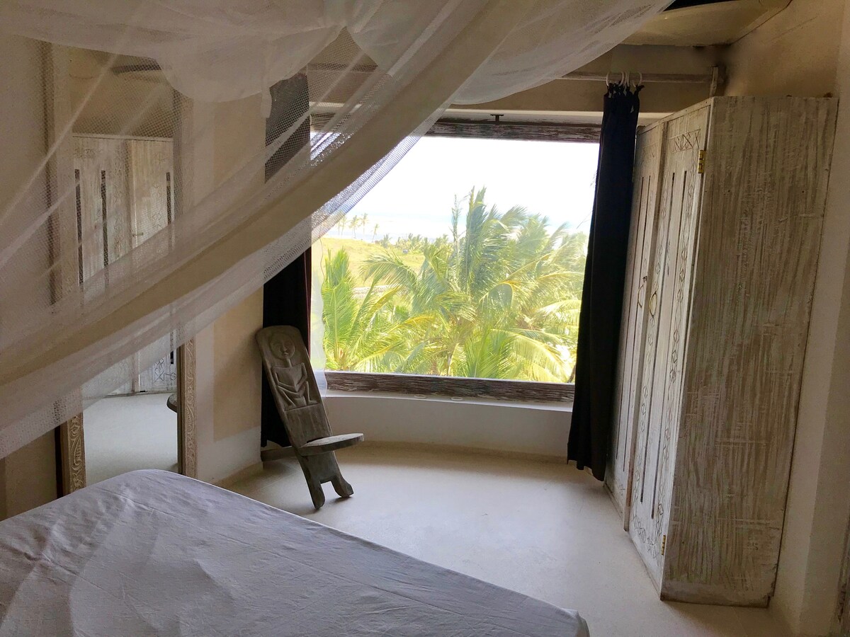 Bienvenue dans mon charmant penthouse avec une vue spectaculaire sur Blue Bay, l'une des plages les plus suggestives de Watamu. Le logement est niché dans un jardin tropical luxuriant et offre une magnifique piscine L'emplacement est tout simplement idéal : à 2 pas des commerces bars restaurants pharmacie casino. Mais le véritable charme est son EMPLACEMENT UNIQUE : non seulement face à la mer, mais DIRECTEMENT sur la PLAGE avec l’océan littéralement à vos pieds. Une expérience inoubliable, entre confort et nature