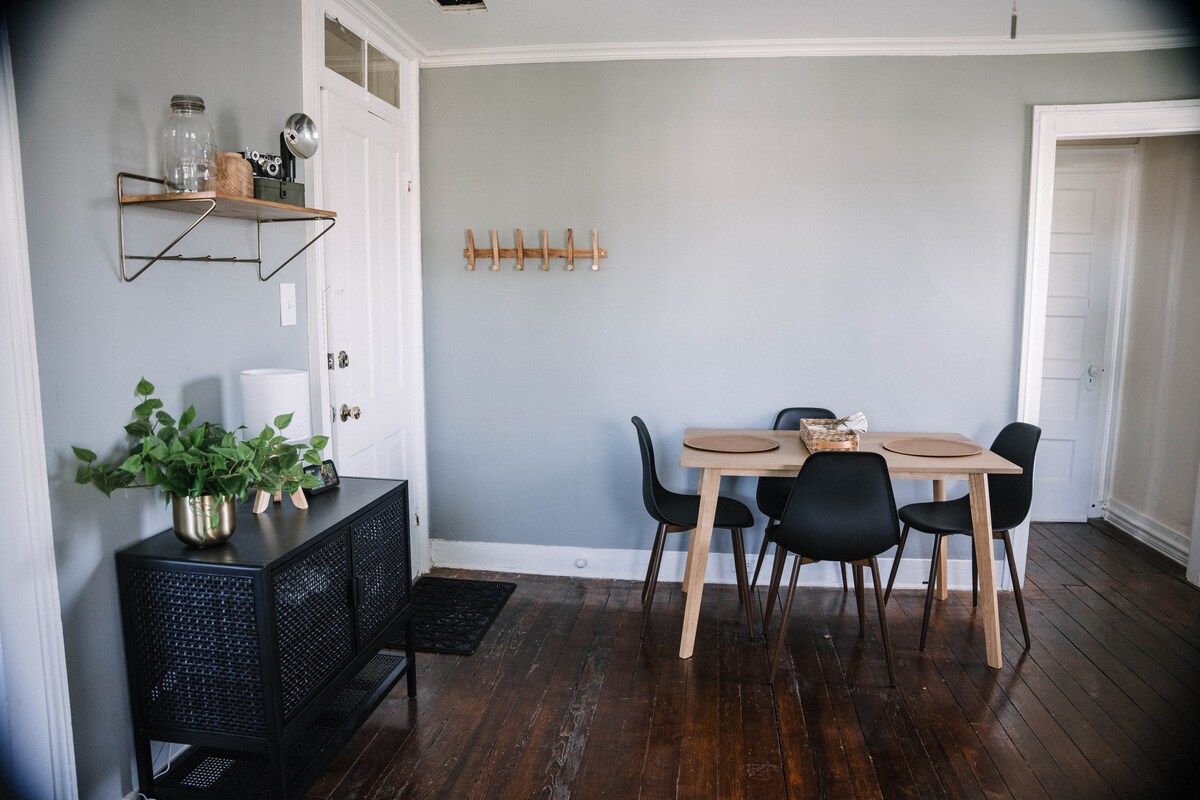 Bienvenue dans notre charmant appartement au cœur de la vieille ville historique d'Alexandria ! Profitez d'une cuisine entièrement équipée, d'un salon confortable avec une télévision connectée de 55 pouces et d'une chambre principale paisible avec salle de bain attenante. Avec deux entrées privées, un parking dédié et un accès facile aux restaurants, aux magasins et au métro de King Street, cette maison offre confort et commodité. Parfait pour se détendre après avoir exploré D.C. ou profiter du charme de la vieille ville à pied !