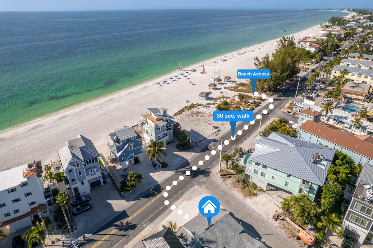 Chalet de plage entièrement meublé avec vue sur l'eau situé sur la belle île Anna Maria juste en face de la plage de sable blanc et du golfe du Mexique. 1 chambre, 1 salle de bain, pour 4 personnes avec le canapé convertible queen size. Chaises de plage/parasols/planches de bodyboard/buanderie, etc. fournis. À trois pâtés de maisons de la rue historique Bridge Street avec des restaurants et des bars animés. Trolley gratuit sur l'île et de l'autre côté du pont du village de pêcheurs de Cortez. Stationnement gratuit hors de la rue.