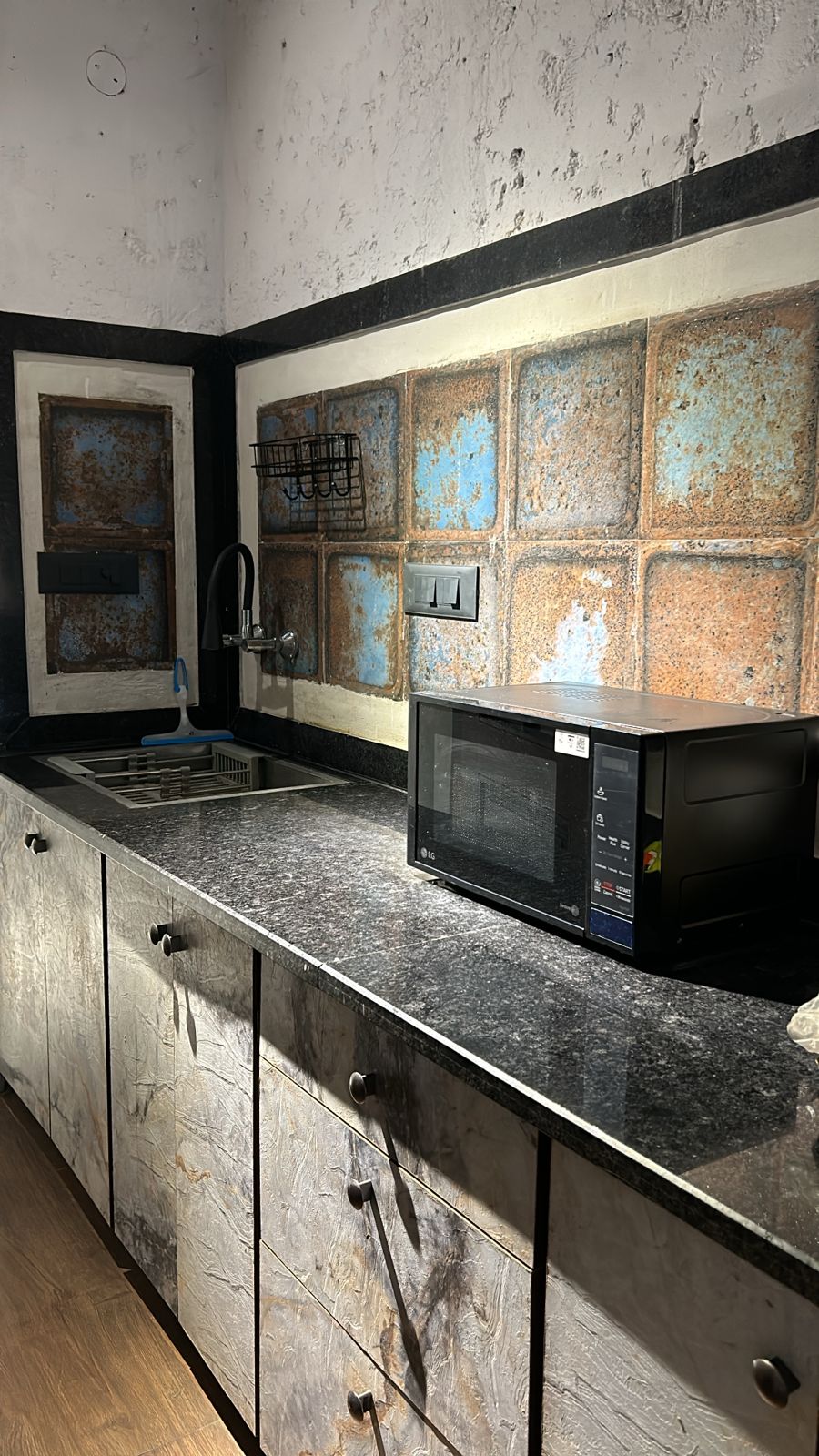 This stylish place to stay near airport with wifi is perfect for families / group stays. Stylish Rooms : *Warm light side lamps *TV *Soft bedside Rugs *Attached wardrobe and bathroom *Bed sheet and blanket *Extra pillows *Towels and toiletries *Air conditioning *Electric geyser in bathroom Fully Equipped Kitchen : *Basic cooking essentials *Required Crockery *Microwave *Electric kettle *Gas stove *Chimney *Filtered water *Refrigerator ❌NO LOUD MUSIC ❌