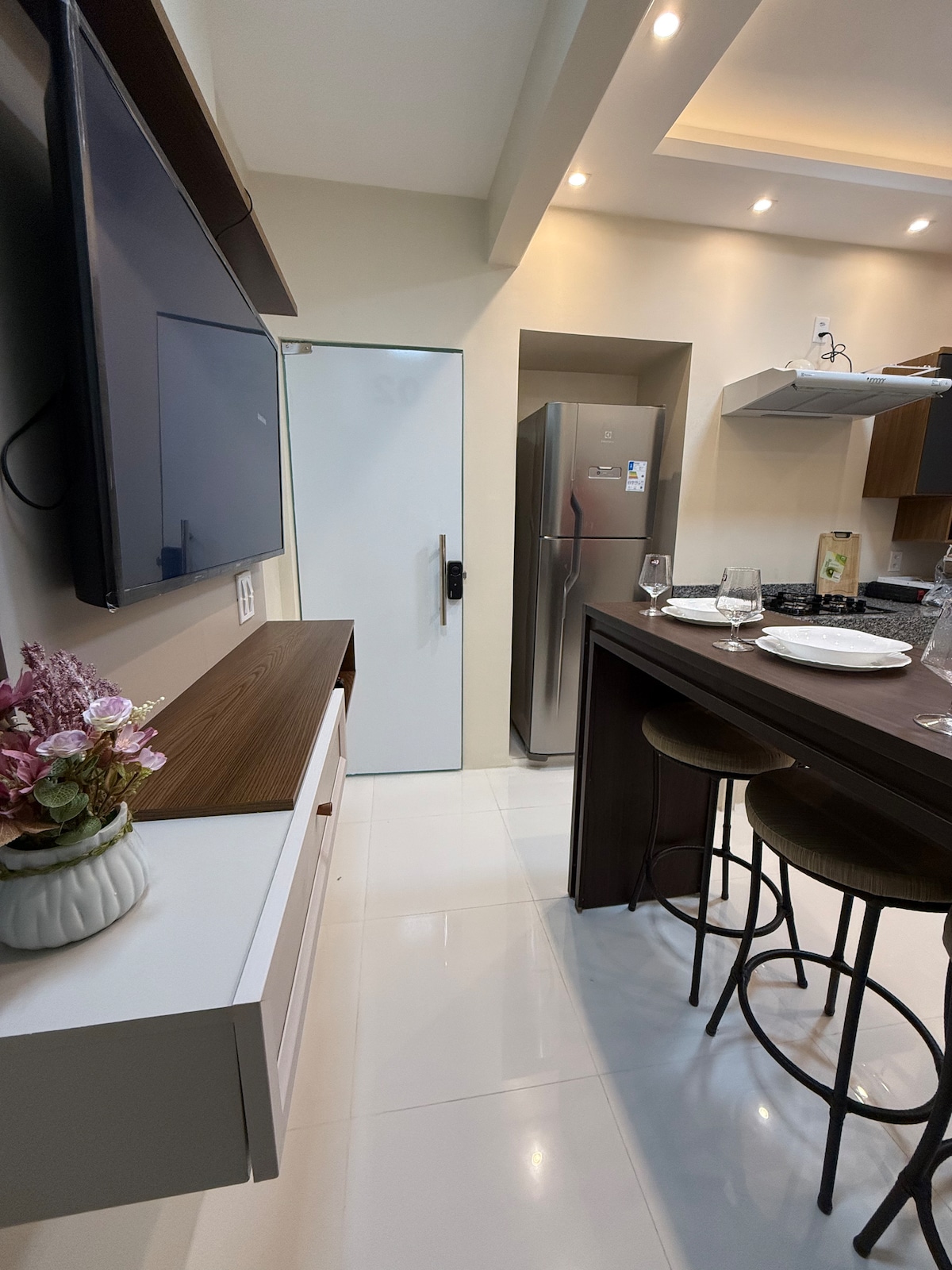 Profitez d'un séjour unique en plein cœur de Manaus ! Notre appartement offre une vue imprenable sur le dôme du Teatro Amazonas, alliant design moderne, confort et emplacement privilégié. Avec un concierge 24h/24, une connexion Wi-Fi rapide et une décoration qui relie la culture locale au confort de la maison, est l'endroit idéal pour se détendre ou explorer la ville. Idéal pour les couples, les voyageurs d'affaires ou ceux qui recherchent des expériences inoubliables en Amazonie urbaine. Bienvenue à Manaus en direct avec style !