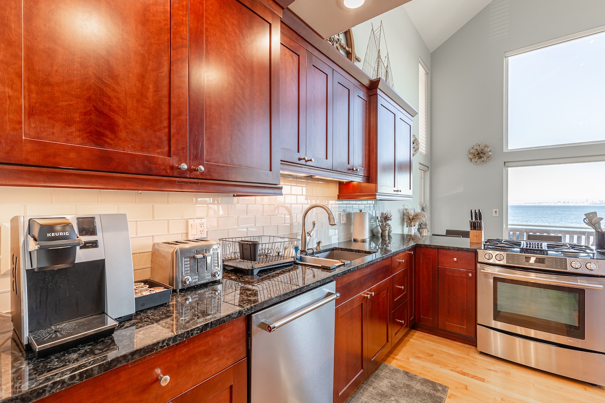 « Miracle Mile Dreams » offre une vue spectaculaire et inégalée sur Puget Sound depuis 4 terrasses ! C'est l'endroit idéal pour tout, des VACANCES d'été à LA PLAGE à un endroit pour les clients de l'extérieur de la ville, une RETRAITE D'ÉQUIPE hivernale en milieu de semaine, ou une réunion spéciale de vieux amis. Découvrez pourquoi des gens du monde entier nous disent que c'est le meilleur Airbnb dans lequel ils ont jamais séjourné ! Cette propriété vraiment incroyable se trouve sur la plage, facilement accessible en voiture vers de bons restaurants et à proximité du ferry Southworth qui vous emmène à Seattle !