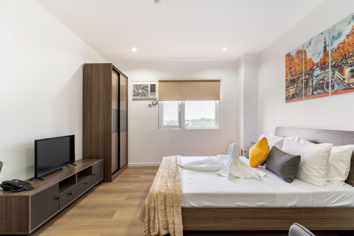 Experience luxury and comfort at Grand Residences Cebu. This modern studio features a peaceful split-type aircon, fully equipped kitchen, Smart TV with Netflix, and fast Wi-Fi. Enjoy resort-style amenities: large pool, gym, gardens, play area, and a rooftop lounge with 360° city views 😍Conveniently across IT Park and minutes from Cebu’s best malls, dining, and attractions—ideal for both business and leisure stays ❤️