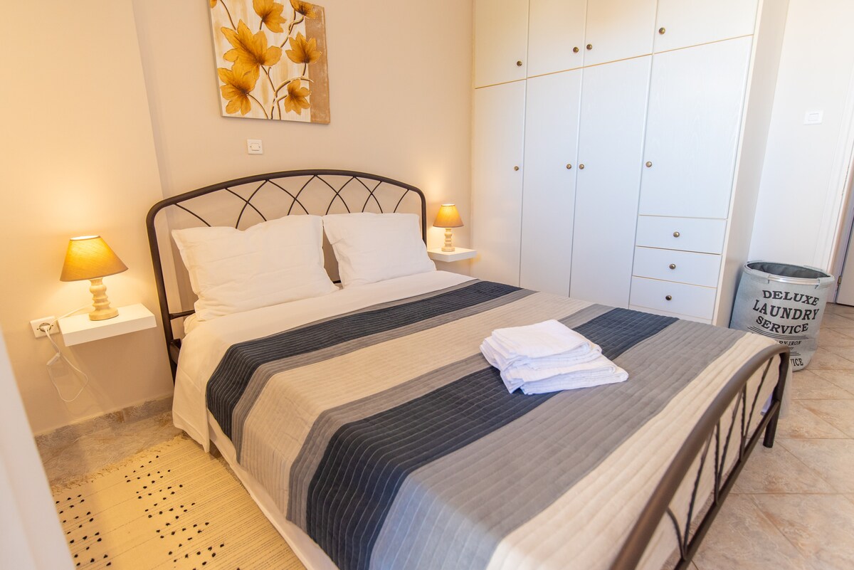 Myrtia est un bel appartement indépendant,situé à l'étage supérieur de la villa. Il dispose d'une chambre double avec une merveilleuse coiffe indonésienne et une autre chambre double qui est un loft et dispose d'un matelas double plus petit. Le salon est en suite avec la salle à manger et la cuisine entièrement équipée. La décoration se compose d'antiquités et d'objets de collection, du monde entier. La salle de bain dispose d'une baignoire et est joliment décorée avec des carreaux peints à la main. Une cinquième personne peut également être hébergée