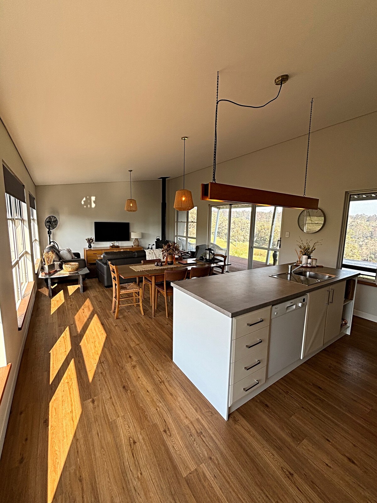 • Tranquil private Cabin with views over rolling hills set on the edge of the Forest. • Only 6 min from Bridgetown • Fully-equipped kitchen • Queen bed in main Cabin and a Single Trundle bed if required, there is also the option of our Bunk room which comprises of 1 Single bed and 1 Double bed • Spacious bathroom with under-floor heating, large shower, toilet, vanity and views, accessible via covered verandah • Visit our YouTube channel @forestedgecabinwa or insta @forestedgecabin