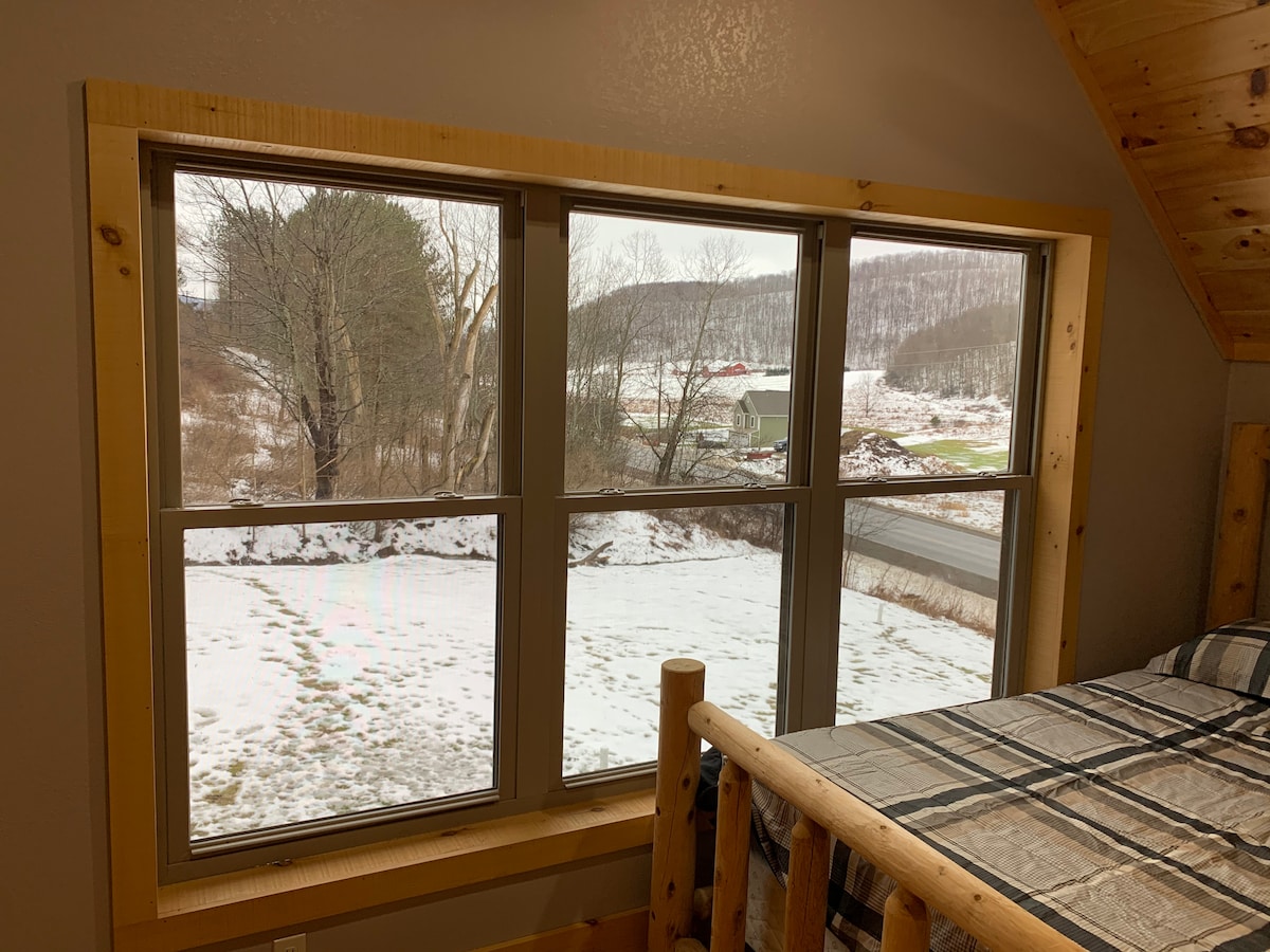 Escapade idéale dans un chalet privé à Ellicottville NY. La propriété est située au sommet d'une colline sur une route privée, vous offrant une belle vue sur la vallée. L'emplacement est à 5 min en voiture du centre-ville d'Ellicottville et à 3 min en voiture de Holiday Valley. Vous trouverez de nombreux sentiers de randonnée sur les terres de l'État à l'extérieur de l'allée privée. Emplacement idéal pour les familles qui cherchent à skier pour le week-end, à faire de la randonnée localement/au parc d'État d'Allegany et à visiter la belle ville d'Ellicottville NY.