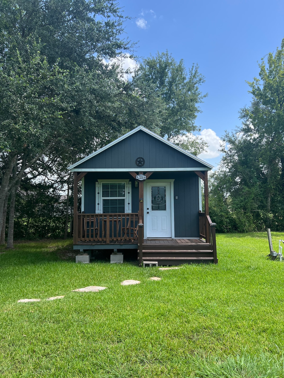 VEUILLEZ LIRE « Autres points à retenir » avant de réserver. Lone Star est une petite maison rustique sur une ferme de sapins de Noël. Vous adorerez vous promener dans les champs de sapins de Noël et boire du café sur le porche donnant sur l'étang. Notre logement est parfait pour les couples, les aventuriers en solo, les ornithologues, les écrivains et les visiteurs qui ne veulent pas rester dans un hôtel. Nous sommes à seulement 23 miles du Texas Medical Center. Les chiots sont les bienvenus ici !