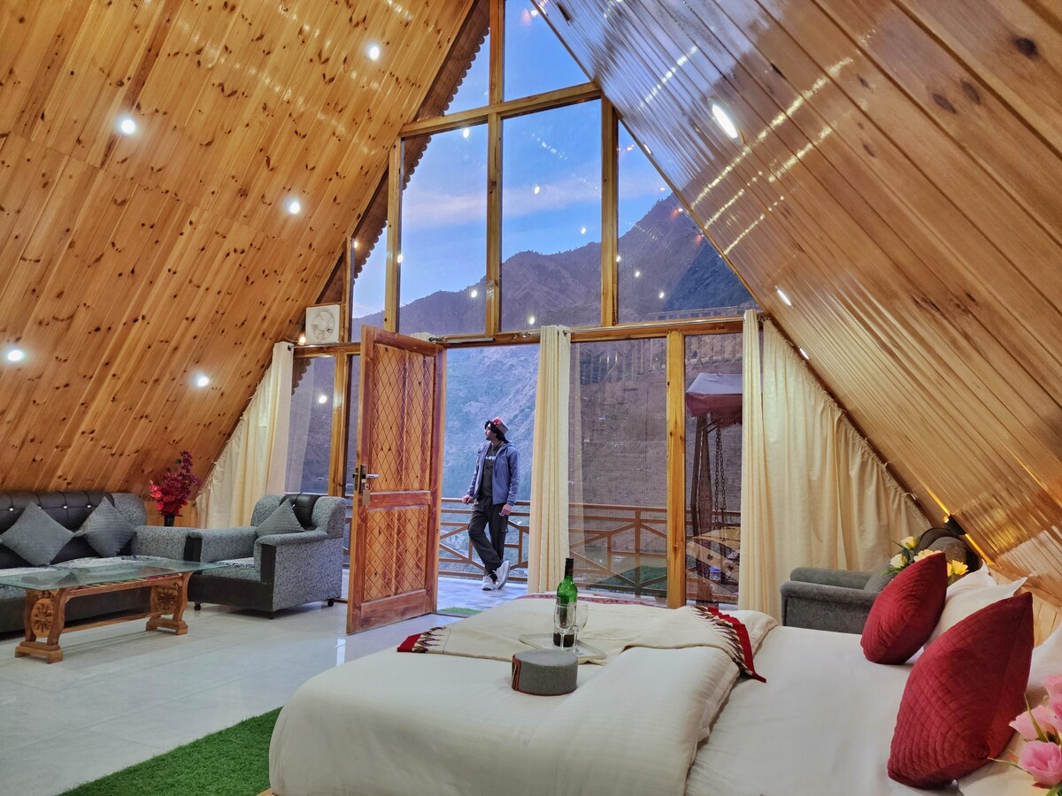 Cette exquise maison en forme de A dans la belle vallée de Sainj est unique en son genre. Vous pourrez profiter de la vue imprenable sur les glaciers enneigés depuis le luxe de votre lit doux et confortable ou explorer les incroyables randonnées vers les montagnes, les cascades et les prairies environnantes. Ressentez la chaleur de l'hôte local qui vous assure une hospitalité parfaite. Venez savourer la magie de la nature avec tous les équipements nécessaires pour une expérience inoubliable à chérir toute une vie !
