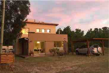 Maison dans la pinède, à 300 m de la plage, 37 e/ Punta del Este et Copacabana. PA : Chambre double, chambre avec couchette et lit. Salle de bain complète. Grande cuisine avec micro ondes, frigo, pava électrique, mixeur, grille-pain et machine à sandwich. PB : salon avec table pour 6 / 8 , canapé-lit pour le sixième invité, fauteuils et salle de bains. Deck : barbecue, chaises et table, douche extérieure. Chauffage : salamandre et poêles électriques. Il y a un parasol et des repose-pieds pour la plage.