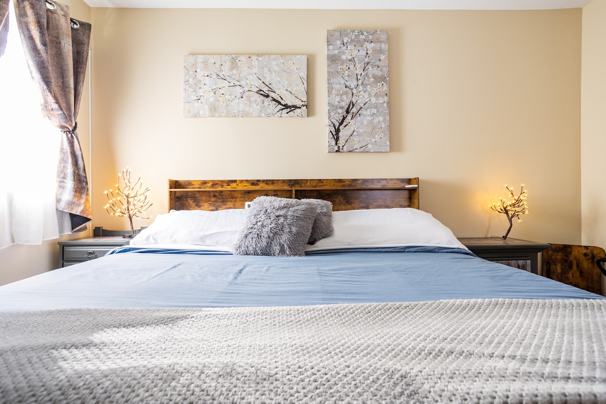 Lit King Size : salle de bain spa privée - près du centre-ville