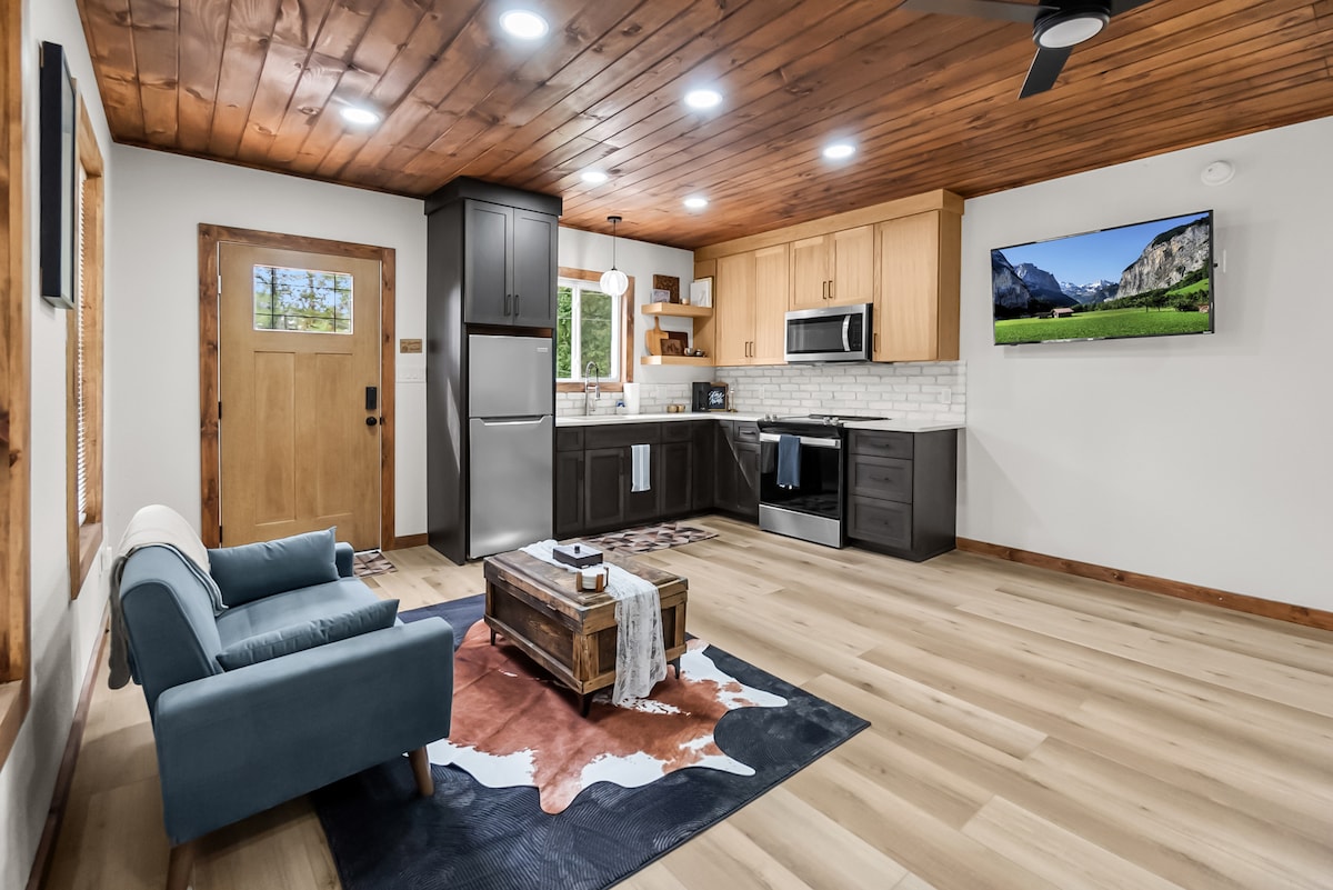 Découvrez une retraite moderne et éclectique pour les couples à Tiny Creekside. Échappez au quotidien et renouez avec la nature dans cette location de vacances d'une chambre et d'une salle de bain nichée dans l'ouest de la Caroline du Nord. C'est la base idéale pour toutes vos aventures dans l'ouest de la Caroline du Nord. Accès rapide à de nombreux sentiers de randonnée pédestres et cyclables. De nombreuses activités, restaurants et sites touristiques à quelques minutes en voiture. Chiens acceptés sans frais pour les animaux !
