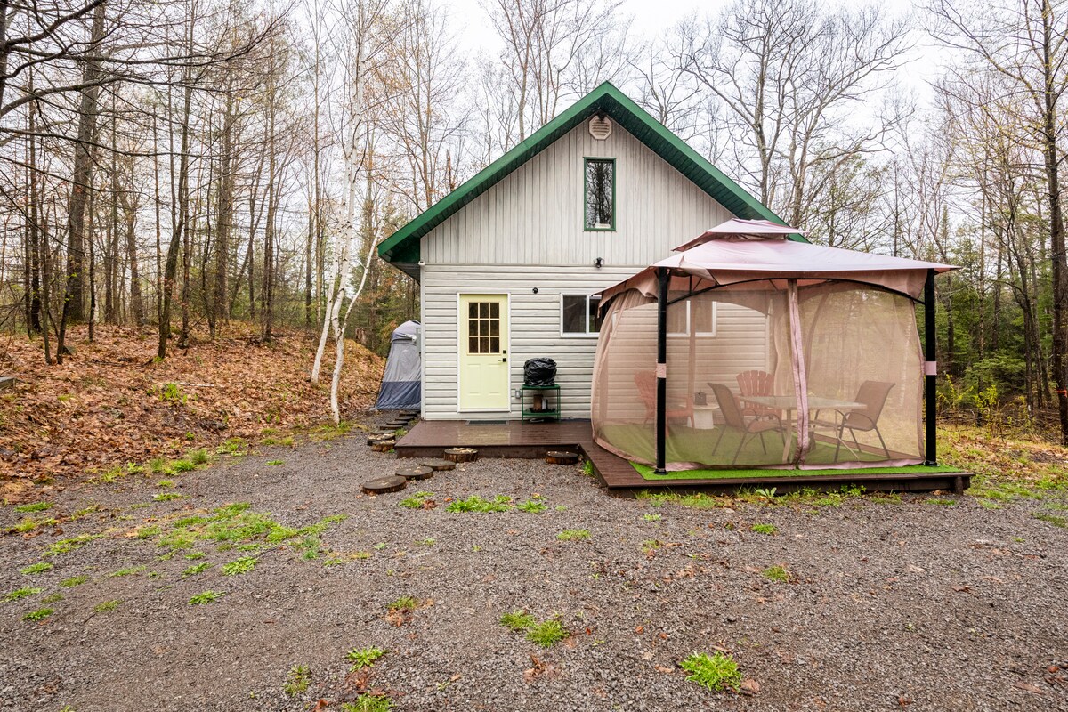 This secluded cabin in the woods is near Peterborough Ontario, about two hours from Toronto. Getaways offer a peaceful escape into nature. One queen and one twin bed up in the loft. The kitchen has a 2 burner counter top stove, fridge, toaster oven and kettle. Air Conditioning . Charcoal BBQ. No running water. .water jugs and bottled water are provided. .clean outhouse plus port-a-potty in loft Please bring your own sheets, pillow cases and towels No pets please.