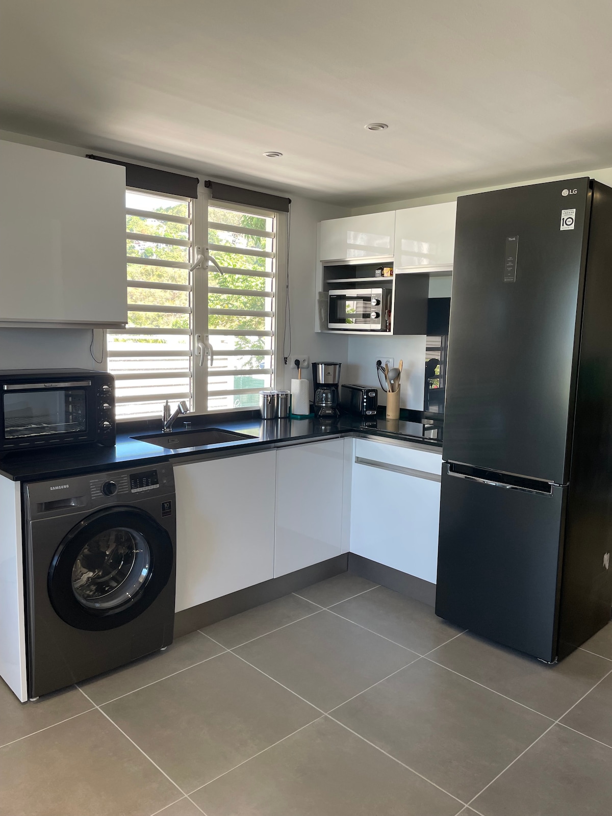 Cet appartement de 3 chambres est un grand logement neuf de 140 m2 décoré avec goût et disposant d'une grande terrasse de 30 m2 avec une très belle vue sur la mer des Caraïbes. Les trois chambres spacieuses ont chacune un très grand lit king size (180 cm). L'appartement dispose d'une très bonne connection wifi par fibre optique. Il est localisé dans le centre de la Martinique, idéalement situé aussi bien pour travailler que pour passer des vacances, proche des plages et des commerces.