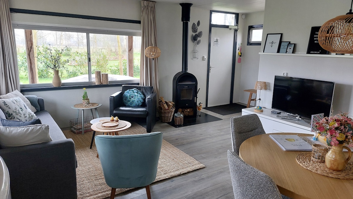 Bienvenue dans notre tiny house unique, nichée dans une forêt privée à la périphérie du charmant village frison de Noordwolde. Cet hébergement moderne est idéal pour les personnes en quête de tranquillité et les amoureux de la nature. En été, profitez de votre grand jardin privé avec un coin salon, une véranda et un hamac entre les arbres. En hiver, vous pouvez vous asseoir confortablement à l'intérieur près du poêle à bois qui chauffe la pièce en un rien de temps. La tiny house est compacte mais équipée de tout le confort !