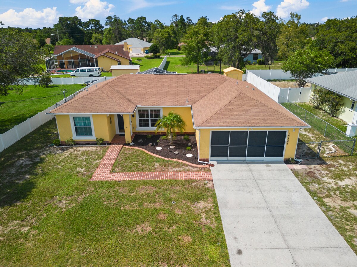 Soyez notre invité dans notre tout nouveau chalet de charme - L'emplacement idéal pour profiter de toutes les aventures à proximité de la côte naturelle de la Floride. Si vous êtes à la recherche d'expériences variées comme un vignoble, des courses de dragsters, un patch de citrouille ou le sentier d'État pavé de 47 miles de Withlacoochee qui offre également des sentiers équestres non pavés ou voir des lamantins à Weeki Wachee et Crystal River. Beaucoup d'excellents restaurants locaux à proximité. À quelques minutes de 7 terrains de golf. Tampa est à 30 minutes par l'autoroute Suncoast - Parking pour caravanes sur place .