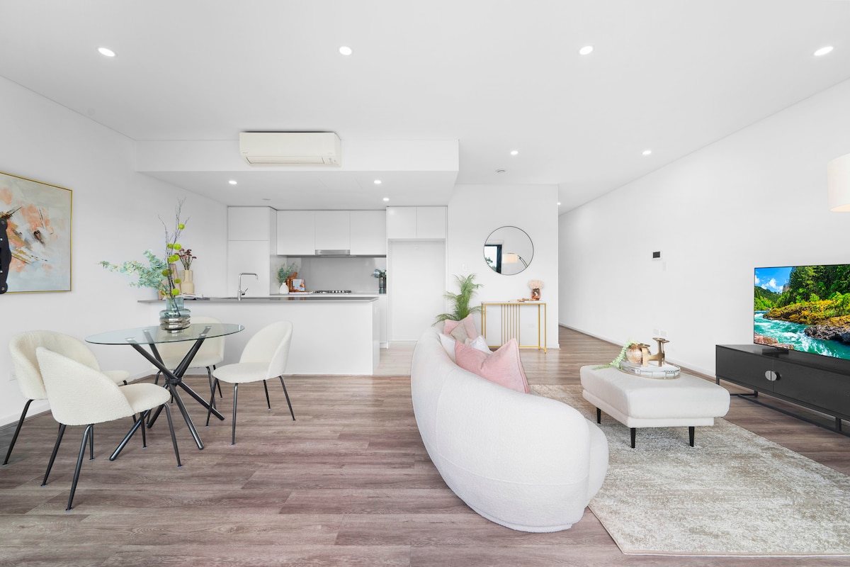 Modern resort-style apartment Free private car park included 12 minutes to Opera House 3 min walk train station 1 stop Airport Ultra quiet bedrooms double glazed windows Rooftop pool Shops & restaurants at street level Supermarket & restaurants 5 mins walk 5km from CBD Sleeps up to 6 people - new furniture & ultra quiet Balcony, A/C, Video Intercom, Internal Laundry Wifi, Netflix, Gym, Wine Cooler & more 1 Queen Bed 1 Double Bed 1 Queen Sofa Bed ( on request) Rooftop BBQ & Gardens