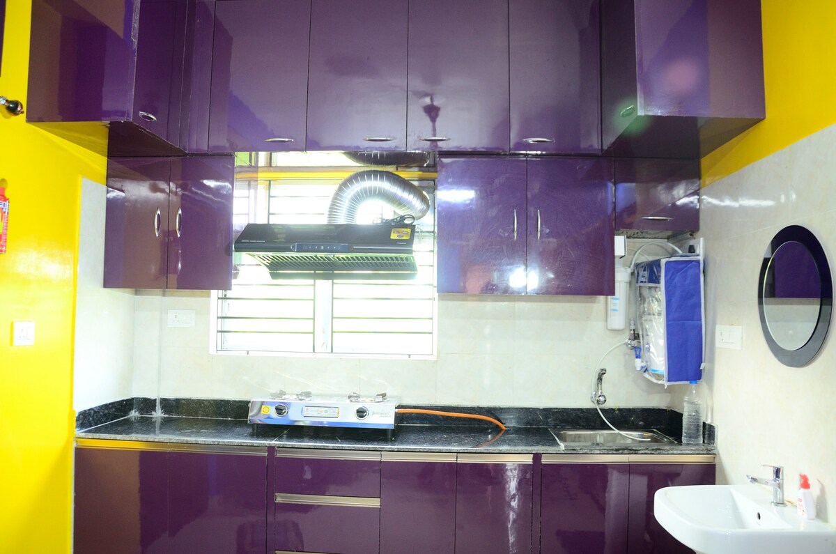 Une propriété Home Away pour tous avec une tranquillité et une paix totales...idéale pour séjourner en famille et en famille et avec des enfants à un prix abordable avec sa propre cuisine.