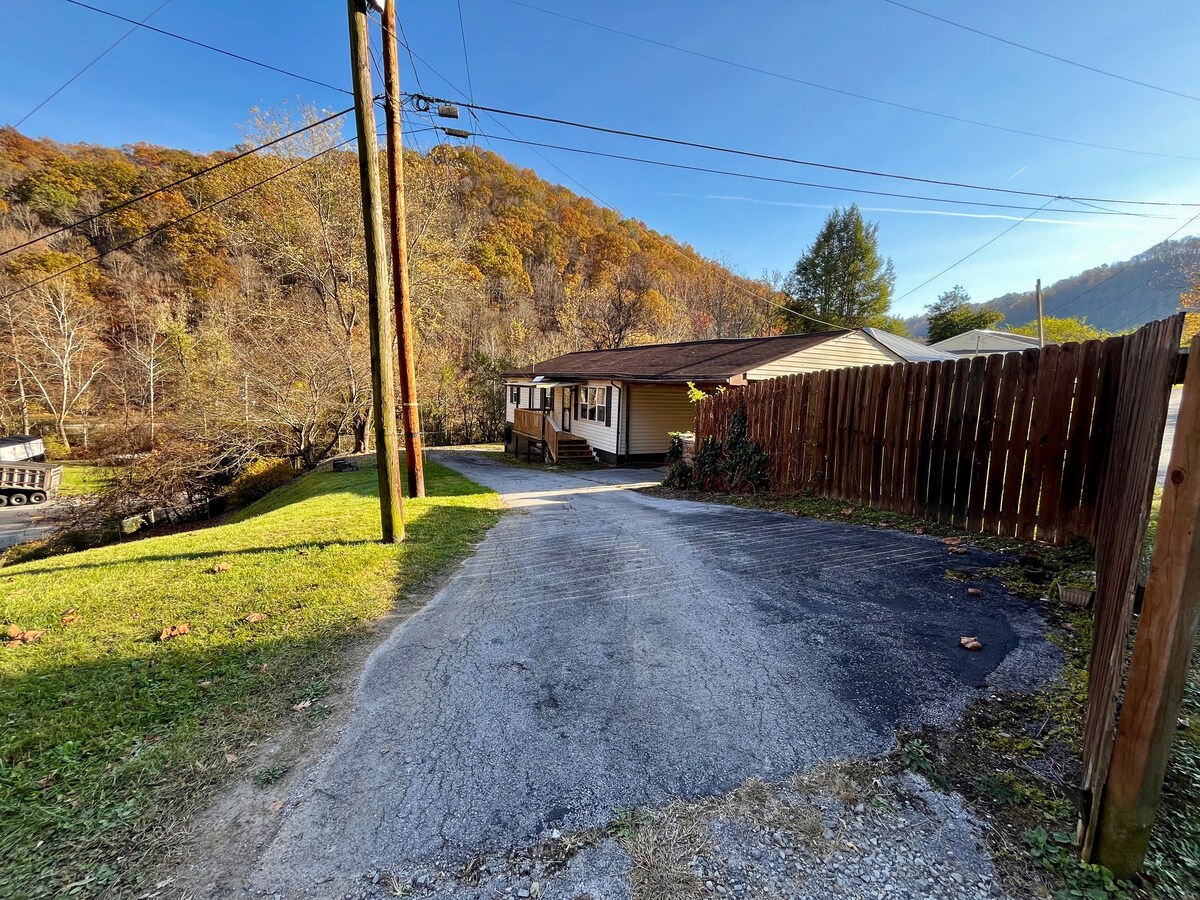 Tout nouveau chalet situé à Welch surplombant Elkhorn Creek ! ! Très proche des sentiers Hatfield et McCoy ! ! Beaucoup de places de stationnement pour les VTT et les remorques ! ! ! La cabane est à distance de marche de plusieurs équipements, y compris un lave-auto ! ! Prenez votre laissez-passer, des boissons fraîches, du gaz et des en-cas au marché de Welch Bantam. Terminez votre journée d'équitation et prenez un sandwich au métro ! ! Très bien à votre convenance ! ! Veuillez apporter vos draps et serviettes ! !