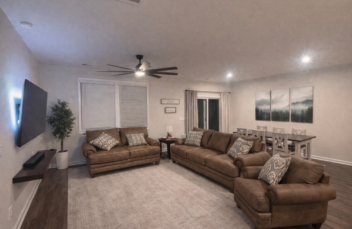 Maison de ville confortable et entièrement meublée avec 2 lits et 2 salles de bain, située à seulement 20 minutes d'Augusta, GA et à 10 minutes de Fort Gordon. La chambre principale comprend un lit king size, une télévision, une salle de bain privée et un grand placard. La deuxième chambre comprend un lit queen. La deuxième salle de bain complète et la buanderie, avec lave-linge et sèche-linge, est située au centre. La cuisine est bien équipée et comprend des appareils électroménagers en acier inoxydable et un coin repas. La grande salle à manger mène à un salon spacieux ouvrant sur le patio arrière avec clôture d'intimité.