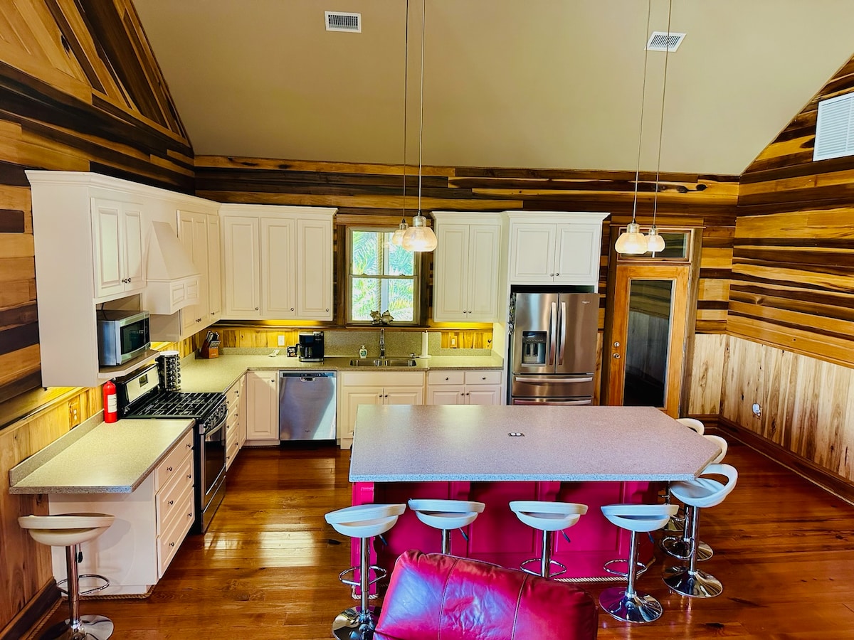 Tabby on Hudson Creek est un chalet moderne confortable avec tout le style et les équipements dont votre famille aura besoin pour se créer des souvenirs sur le marais. Situé entre Savannah et St. Simons Island, l'emplacement est la retraite tranquille parfaite après une journée de shopping, de restauration et de plage. Attrapez des crabes ou faites du kayak sur les voies navigables côtières depuis votre propre quai privé, ou détendez-vous avec un livre dans notre maison magnifiquement conçue. Qui sait, vous pourrez peut-être même vous lier d'amitié avec un dauphin d'eau douce ou un lamantin si vous avez de la chance !