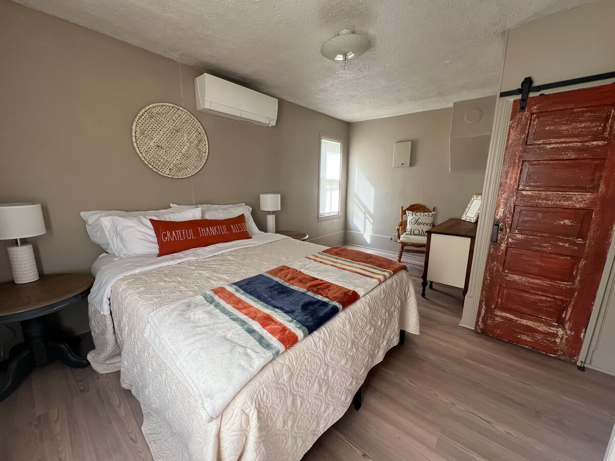 Profitez des commodités modernes de ce bungalow rénové des années 1930 ! Vous adorerez cette magnifique nouvelle cuisine avec tous les appareils, les comptoirs en quartz, le bar de l'îlot central et toutes les commodités nécessaires pour votre séjour. Le séjour confortable dispose d'un petit fauteuil inclinable et d'un futon confortable. Détendez-vous dans la chambre sur le lit queen size avec placard. La salle d'eau dispose d'une spacieuse douche à l'italienne Onyx. Le loft dispose de deux lits jumeaux, mais n'est accessible qu'avec une échelle (5 ans et plus seulement).