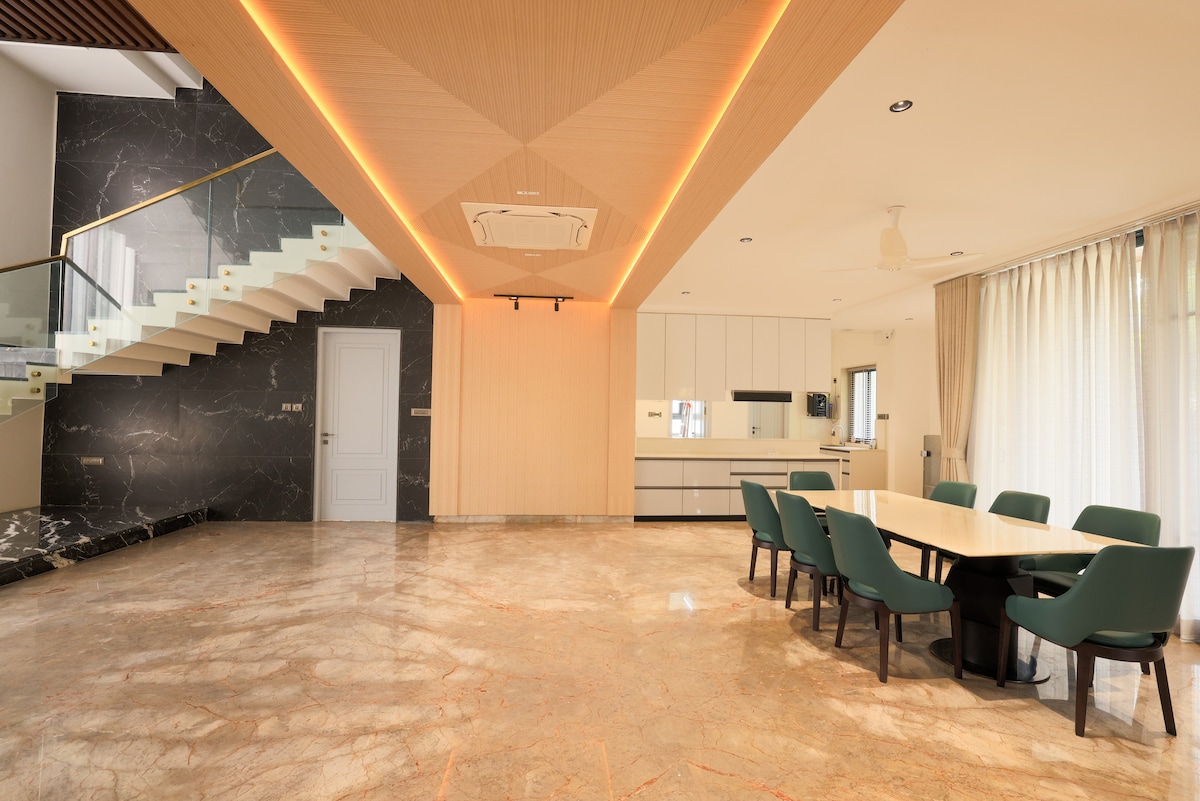 Welcome to THE VINTAGE GROVE Step into a premium vintage-themed 3BHK where old-world charm meets modern luxury. More than just a stay, It is your refined city escape. Located in a prestigious neighborhoods, this thoughtfully curated home is perfect for families, friends, and business travelers seeking space, style, and comfort. With rich vintage aesthetics, cozy corners, lush indoor greenery, and a warm-white glow that feels like golden hour -- every detail is crafted to elevate your stay.
