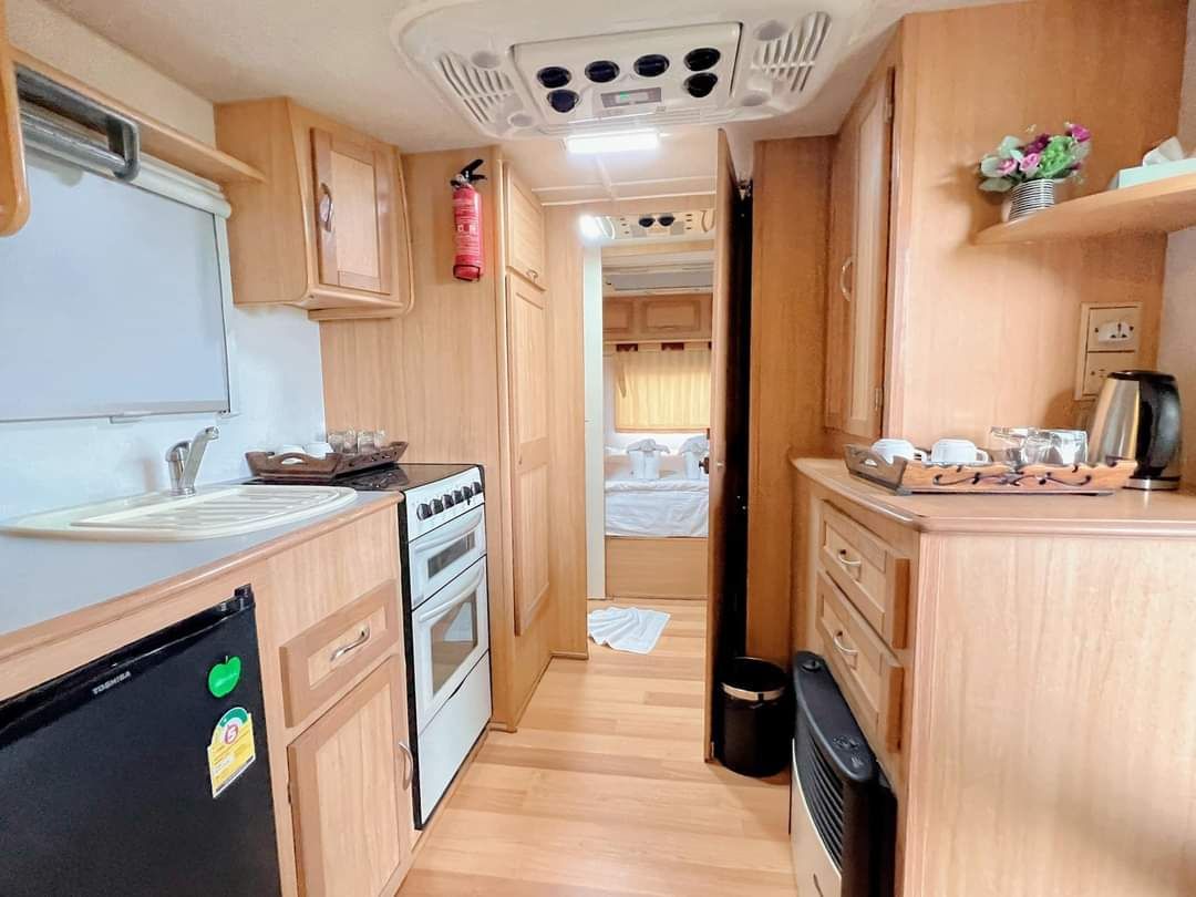 เปลี่ยนบรรยากาศมาพักผ่อนใน "รถบ้านสไตล์เรโทร" ที่ตกแต่งอย่างเรียบง่ายและอบอุ่นท่ามกลางวิวธรรมชาติของเขาใหญ่ ตัวรถตั้งอยู่ในโซนที่เป็นส่วนตัว พร้อมพื้นที่พักผ่อนด้านนอกให้คุณได้นั่งรับลมเย็นๆ และชมแสงดาวในยามค่ำคืน ภายในครบครันด้วยสิ่งอำนวยความสะดวกที่จำเป็น ให้ความรู้สึกเหมือนได้มาตั้งแคมป์แบบสะดวกสบาย (Glamping) เหมาะสำหรับคนที่มองหาประสบการณ์การพักผ่อนที่แตกต่างและเป็นกันเอง Escape to our "Cozy Retro Caravan" for a unique Glamping experience in Khao Yai. Tucked away in a private corner