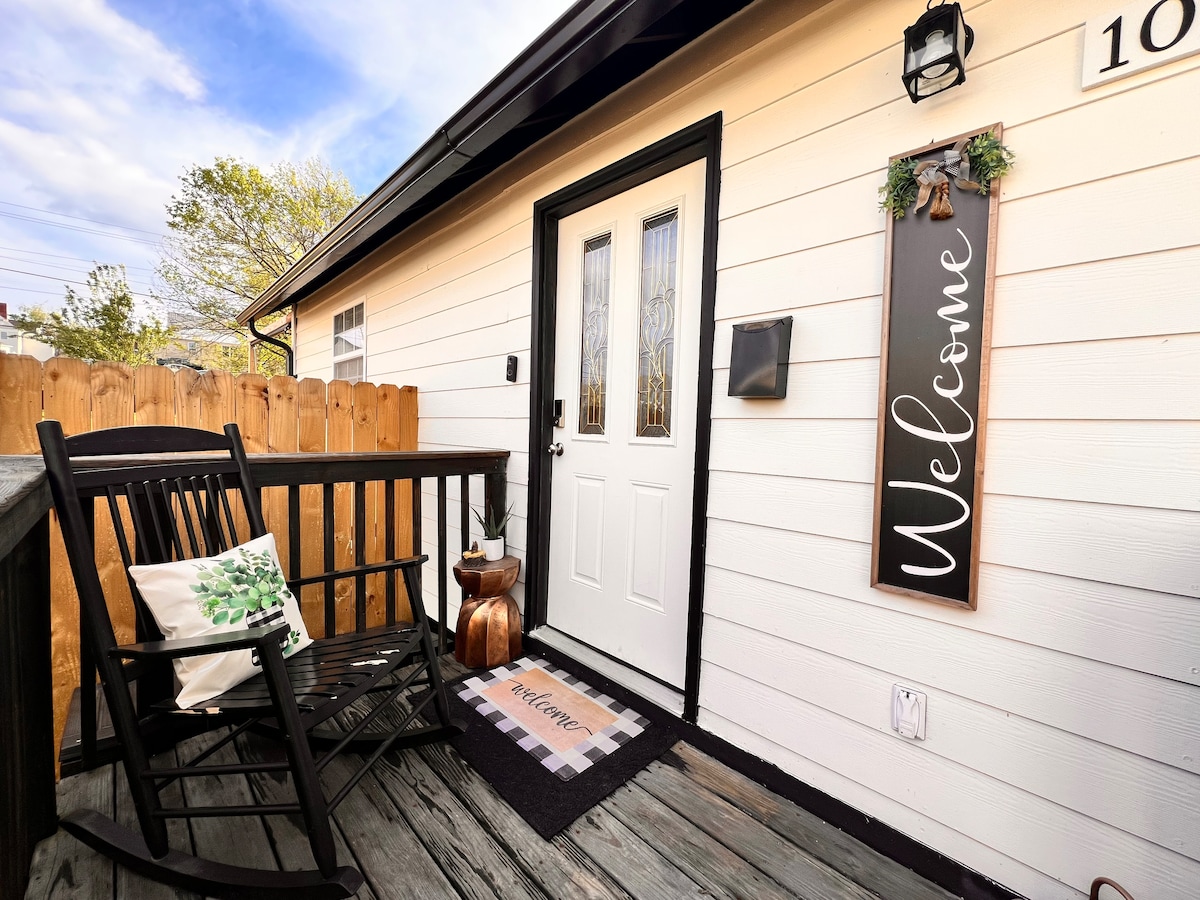Entrez dans un espace accueillant et confortable dans cette maison artisanale des années 1930 rénovée ! Situé au centre de Bristol, à proximité du centre-ville et de l'Université King. Animaux de compagnie bienvenus ! Beaucoup de places de stationnement dans l'allée. Porche avant couvert. Salon avec beaucoup de sièges. Cuisine entièrement équipée, avec lave-linge et sèche-linge sur place. La grande terrasse arrière dispose d'une rampe pour un accès facile à la cour, qui est entièrement clôturée. Les deux chambres sont meublées avec des draps neufs de haute qualité pour une expérience à la maison ultime.