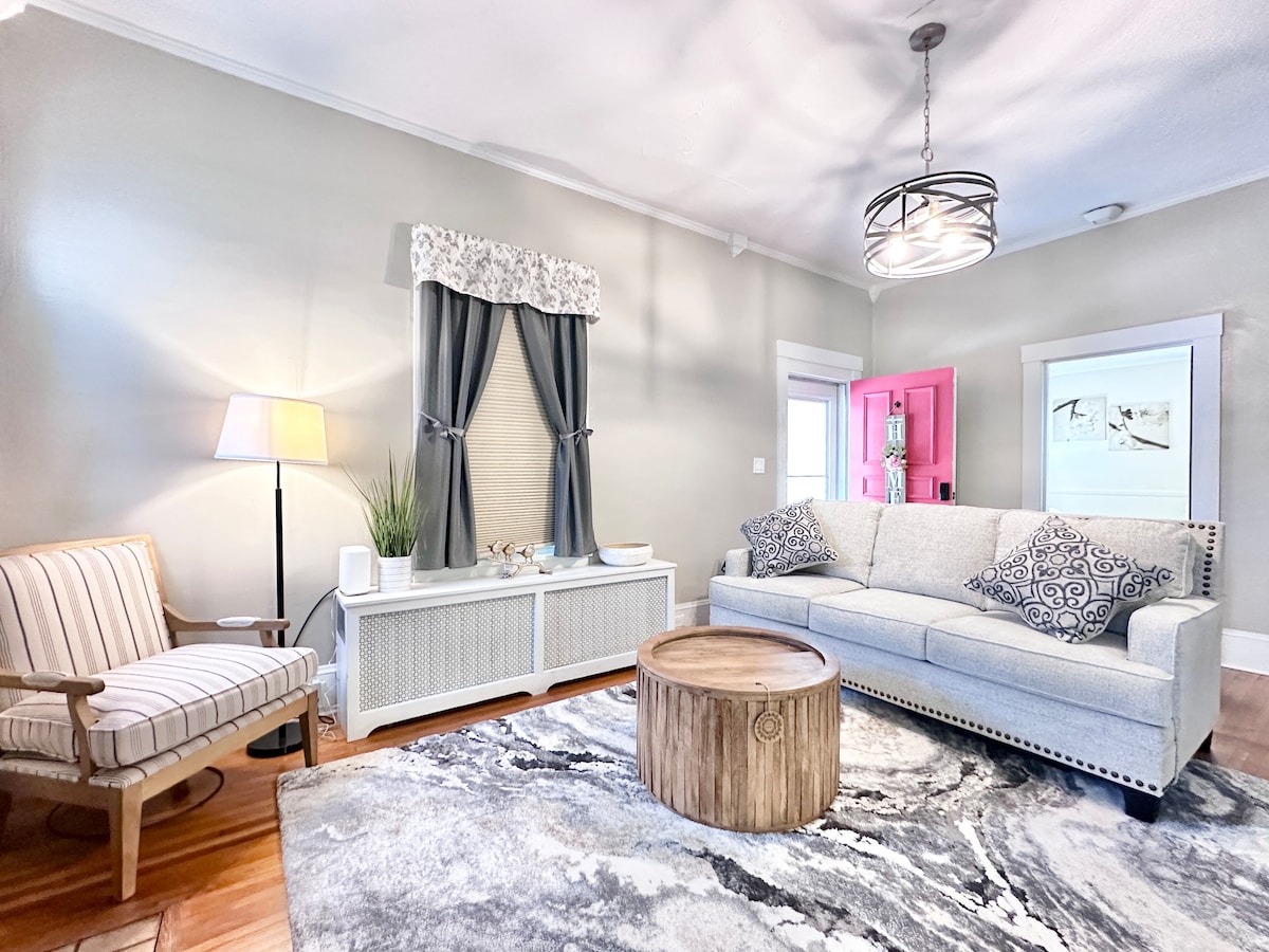 Appartement confortable d'une chambre, entièrement meublé, avec entrée indépendante, situé au sous-sol de notre magnifique maison historique à Bluefield, en Virginie-Occidentale. Nous habitons à l'étage. Nous n'acceptons que des voyageurs calmes et respectueux. Les équipements comprennent le Wi-Fi, un lave-linge/sèche-linge, une cuisine entièrement approvisionnée, des en-cas, des boissons, du café et du thé. Grand espace repas et cuisine spacieuse. Lit Queen Size avec surmatelas et draps à contexture 1 200. Grand convertible en L et grande télévision à écran plat. Avec une cheminée électrique pour les nuits fraîches.