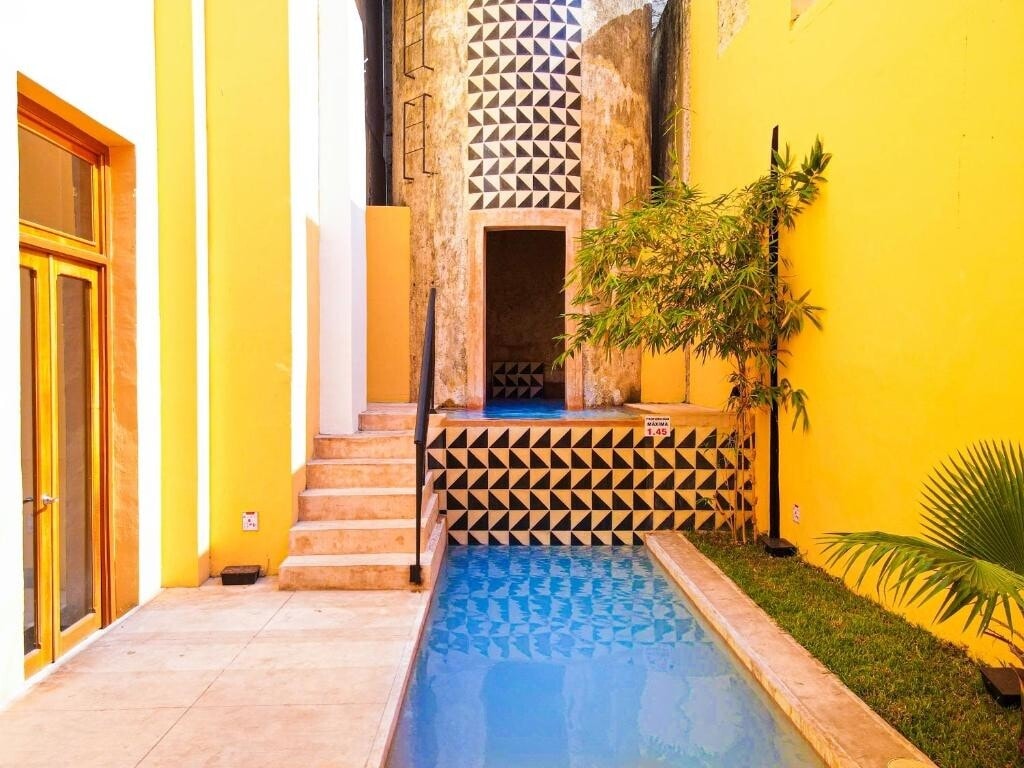 King bed suite with private ensuite bath in upscale guest house that is near everything you want to visit. Wi-Fi, pool, courtyard, gardens, covered terrace for outdoor dining and working. 12-minute walk to old downtown & Calle 60 filled with trendy restaurants, & 20-minute walk to the famous Paso de Montejo zone. Renovated historic colonial guest house in the historical Centro district. Modern, hotel style, private guest quarters with ensuite bathrooms, and amenities.