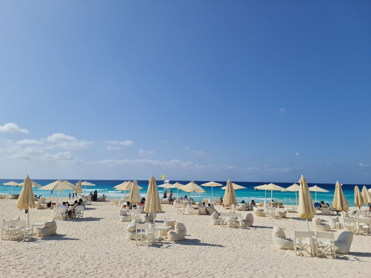Wake up to the stunning turquoise waters of Marsa Matruh in this spacious 3-bedroom beachfront apartment. Perfectly positioned to offer panoramic sea views, our space is designed for large families and groups (sleeps 8 comfortably). Enjoy direct beach access, cool sea breezes, and the convenience of free parking.