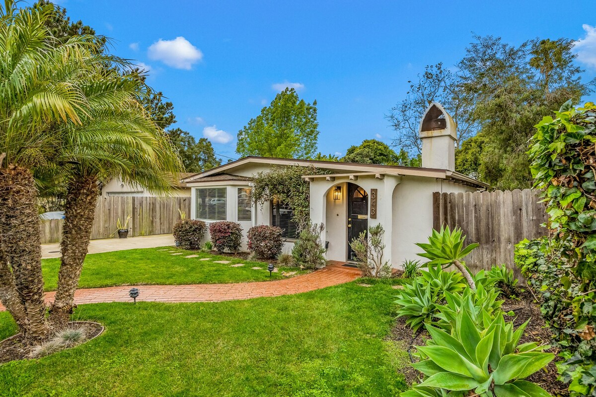 Paradis de vacances moderne et entièrement rénové avec tout le mobilier neuf. Art incroyable, mobilier du moment et literie de luxe organisés par un Superhôte 25 fois pour satisfaire le voyageur le plus exigeant. À distance de marche de Mesa Lane Beach et de Hendry's beach. À quelques pas de la réserve familiale Douglas avec 3 miles de sentiers de randonnée côté océan. Au bout d'un cul de sac paisible, un havre de paix sans voiture ; super sûr pour les enfants ! Meublé avec tout ce dont vous avez besoin pour des vacances incroyables !