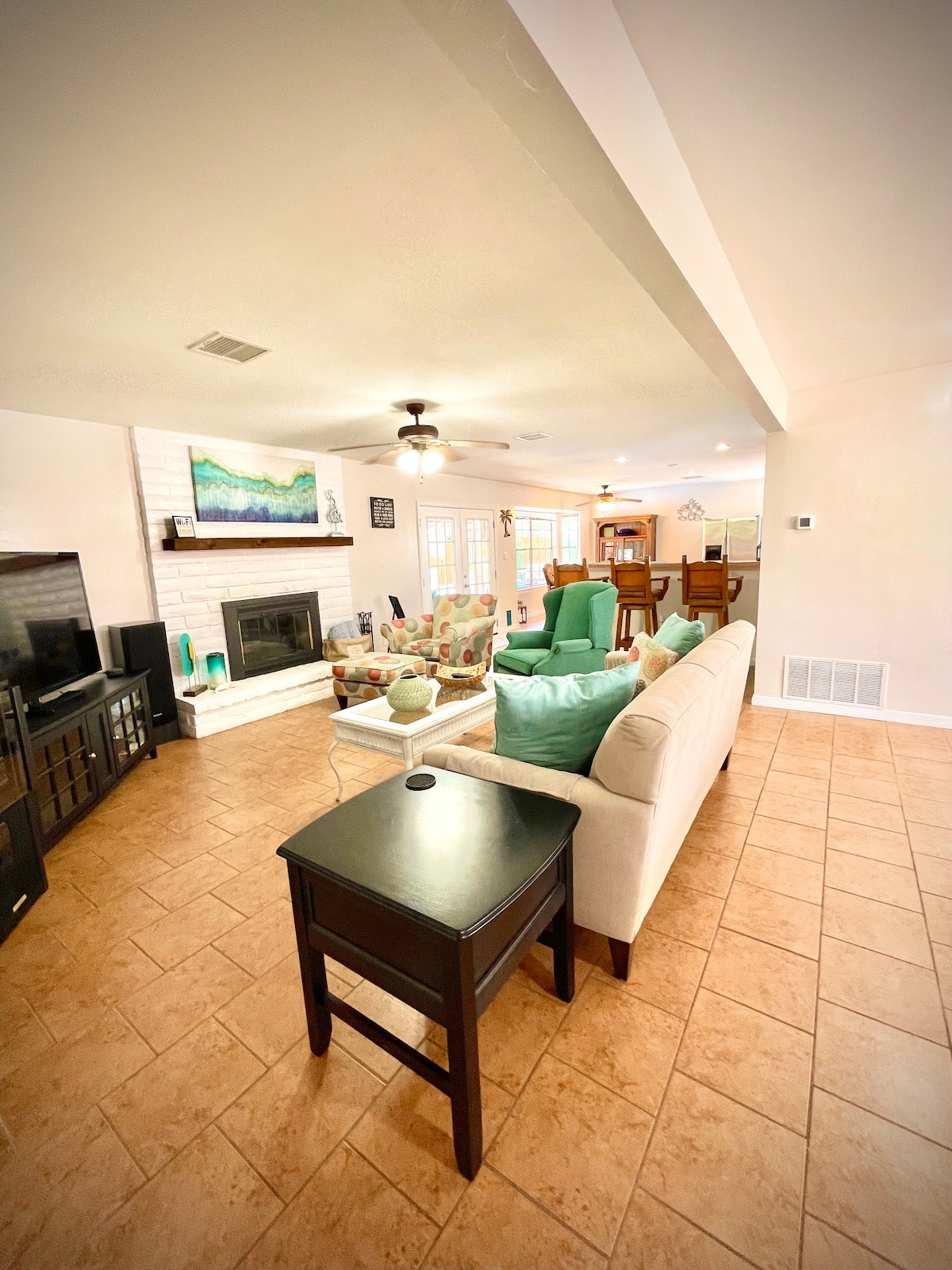 Cette maison moderne de luxe est conçue pour convenir à tous les voyageurs ! Que vous soyez à la recherche d'une escapade pour le week-end ou d'un endroit pour travailler et jouer, cette maison a tout à offrir dans la belle ville de Las Cruces, au Nouveau-Mexique. Située dans un tout nouveau quartier près du terrain de golf Red Hawk et de plusieurs parcs familiaux. Les voyageurs peuvent se reposer paisiblement dans l'une des 4 chambres et profiter d'équipements tels qu'un barbecue extérieur, un coin salon extérieur, des jeux de pelouse, des jeux de société et la plupart des articles de cuisine. Internet haut débit inclus et téléviseurs intelligents.
