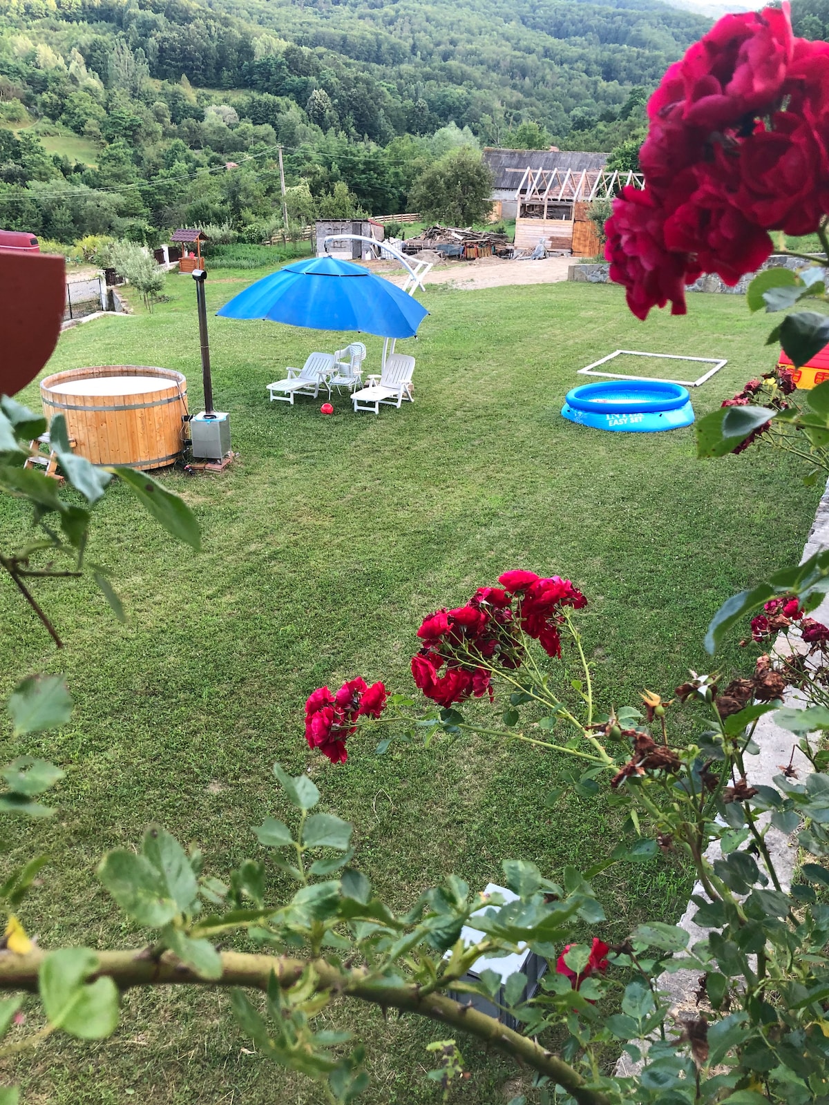 Nous avons un bel endroit situé dans une petite ville avec beaucoup de forêt autour et aussi une petite rivière. Everithing est construit en bois et pour le chauffage en hiver, nous avons également un arangament rustique et des bedroms. Nous avons un espace barbecue et beaucoup de fleurs, des roses spéciales. Vous pouvez faire le tour pour voir les rochers calcaires d'Ampoita et pas seulement. Le forfait minimum est de 2 nuits.