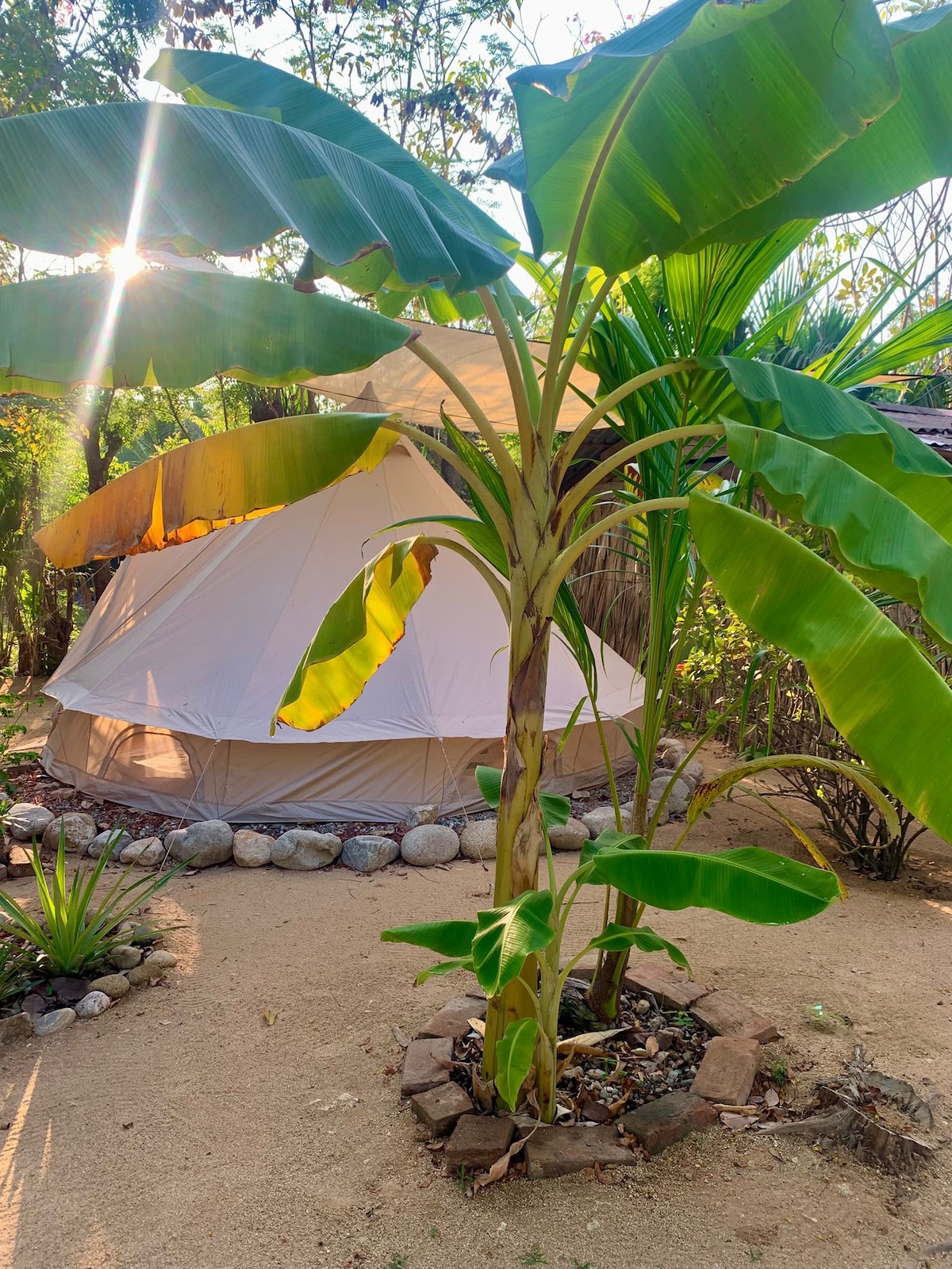 Tente glamping 10 avec cuisine et salle de bain extérieure détachée