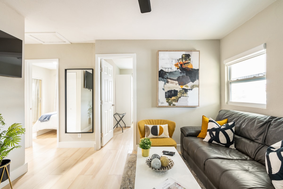 Bienvenue dans notre havre de paix Art déco Votre escapade organisée au cœur de Little Havana, personnellement organisée par moi-même Terri, un Superhôte de confiance depuis plus de 6 ans avec plus de 1300 avis 5 ⭐️. 🚶 À proximité des magasins, bars, clubs et restaurants 🛏️ Chambre avec lit King size + canapé-lit Queen size ☕ Cuisine entièrement équipée 🅿️ Parking privé et 🧺 buanderie gratuits sur place ⚾️.5 miles du Marlins Stadium Parfait pour les courts et longs séjours, y compris la récupération après une chirurgie (veuillez nous en informer) У Arrivée anticipée/départ tardif flexible 🍷espace extérieur privé
