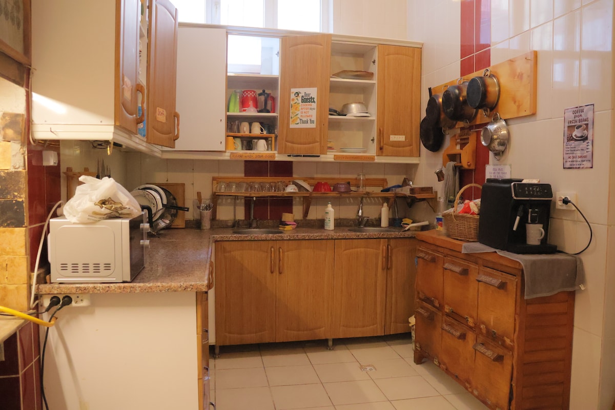 Chambre privée avec salle de bain partagée à l'auberge Le Mat. L'auberge est située dans un magnifique et l'un des bâtiments les plus emblématiques de la vieille ville. Elle est située dans le quartier de Larnaca, à seulement 100 mètres de la plage de Finikoudes, à 300 mètres de l'église St. Lazarus. Commerces, bars, restaurants à quelques minutes à pied L'hospitalité est un mot-clé pour nous Nous offrons un environnement propre et sûr, avec une cuisine entièrement équipée que vous pouvez utiliser pour cuisiner vos repas, une cour où vous pouvez vous reposer et vous détendre.