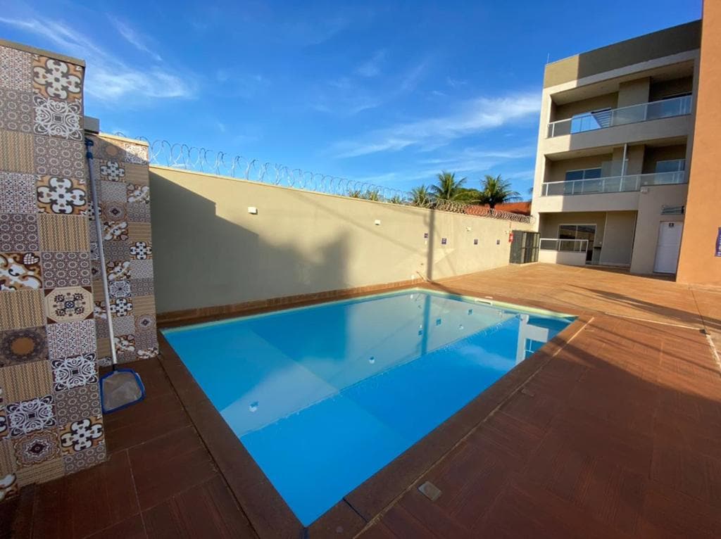 Casa com área de lazer. A casa possui 1 quarto com duas camas de casal e um colchão, guarda roupa e ar condicionado. Possui um amplo banheiro interno e 2 banheiros externos tipo "masculino e feminino". A sala conta um sofá retrátil e reclinável. A casa fornece ainda internet Wi-Fi. Área externa com mesa e cadeiras, churrasqueira e piscina limpa exclusiva para recebê-los.