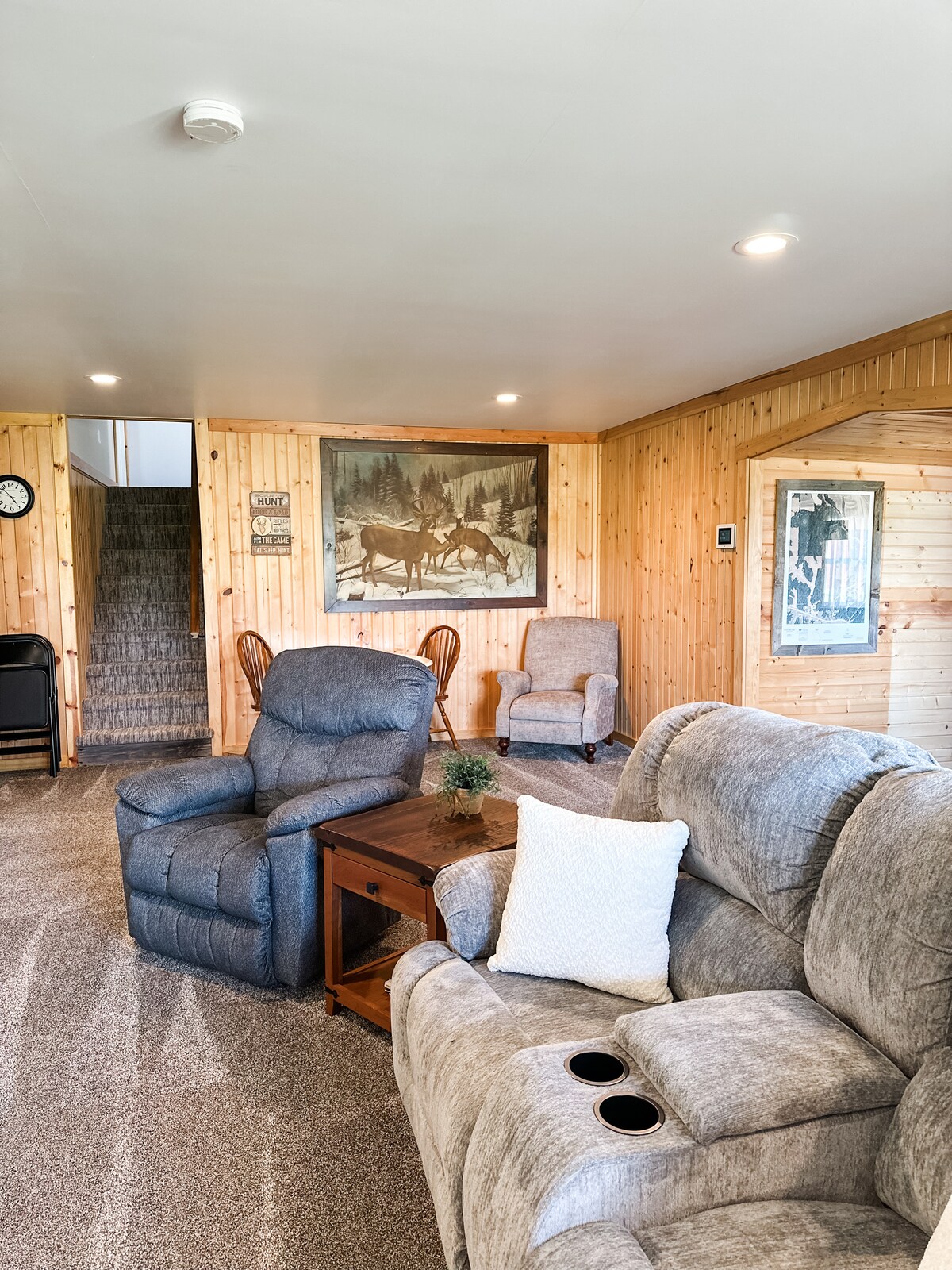 Grand espace ouvert avec canapés, beaucoup d'espace pour les enfants et les jouets Petite cuisine avec cuisinière, réfrigérateur et micro-ondes C'était autrefois un bureau, la cuisine et la demi-salle de bain sont petites , mais tout est là. Tous les appareils de cuisine de grande taille, Plus tard, il a été utilisé pour une location, de sorte que la laveuse, la sécheuse et la douche ont été ajoutées, ce qui explique pourquoi elles ne sont pas dans l'emplacement habituel Comme c'est à côté de l'autoroute 36, c'est facile à prendre et à quitter. Proche de la ville (1,5 km de Walmart).