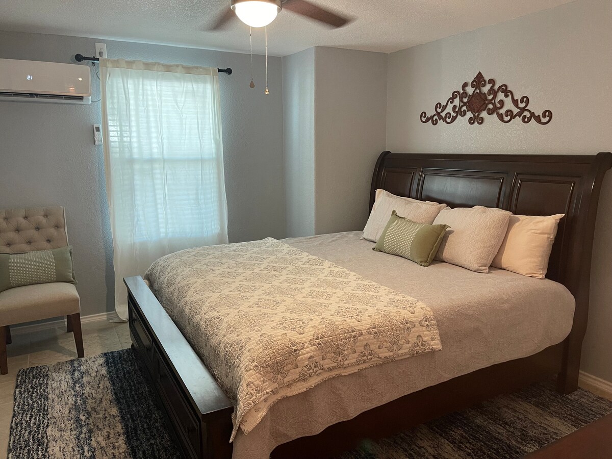 Oubliez vos soucis dans cet espace spacieux et serein. Avec 1 000 pieds carrés, cette spacieuse maison d'hôtes d'une chambre et une salle de bain dispose de toutes les commodités dont vous avez besoin pour rendre votre séjour confortable et pratique. Barbecue avec vue sur les montagnes de Floride, lave-linge et sèche-linge, lit king size avec télévision, canapés inclinables en cuir avec télévision 65". Le futon et le matelas pneumatique offrent un couchage supplémentaire pour les invités. Netflix et Youtube TV sont fournis. Au plaisir de vous accueillir bientôt !