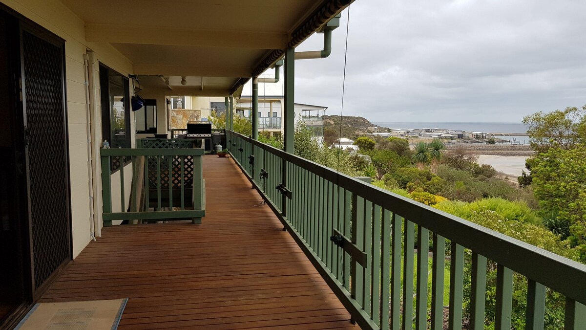 Bienvenue dans notre maison de plage des années 1950 rénovée et inspirée des Hamptons. Notre grande chambre Airbnb se trouve au niveau inférieur. Port Victoria est niché dans une partie magnifique et pittoresque de la péninsule de Yorke. Vous adorerez la vue sur l'océan depuis votre chambre, votre salon et votre patio. Si le temps tourne, vous pouvez toujours profiter de la vue avec un verre et des amuse-gueules depuis le bar de la fenêtre du salon ou vous blottir dans la zone du barbecue.