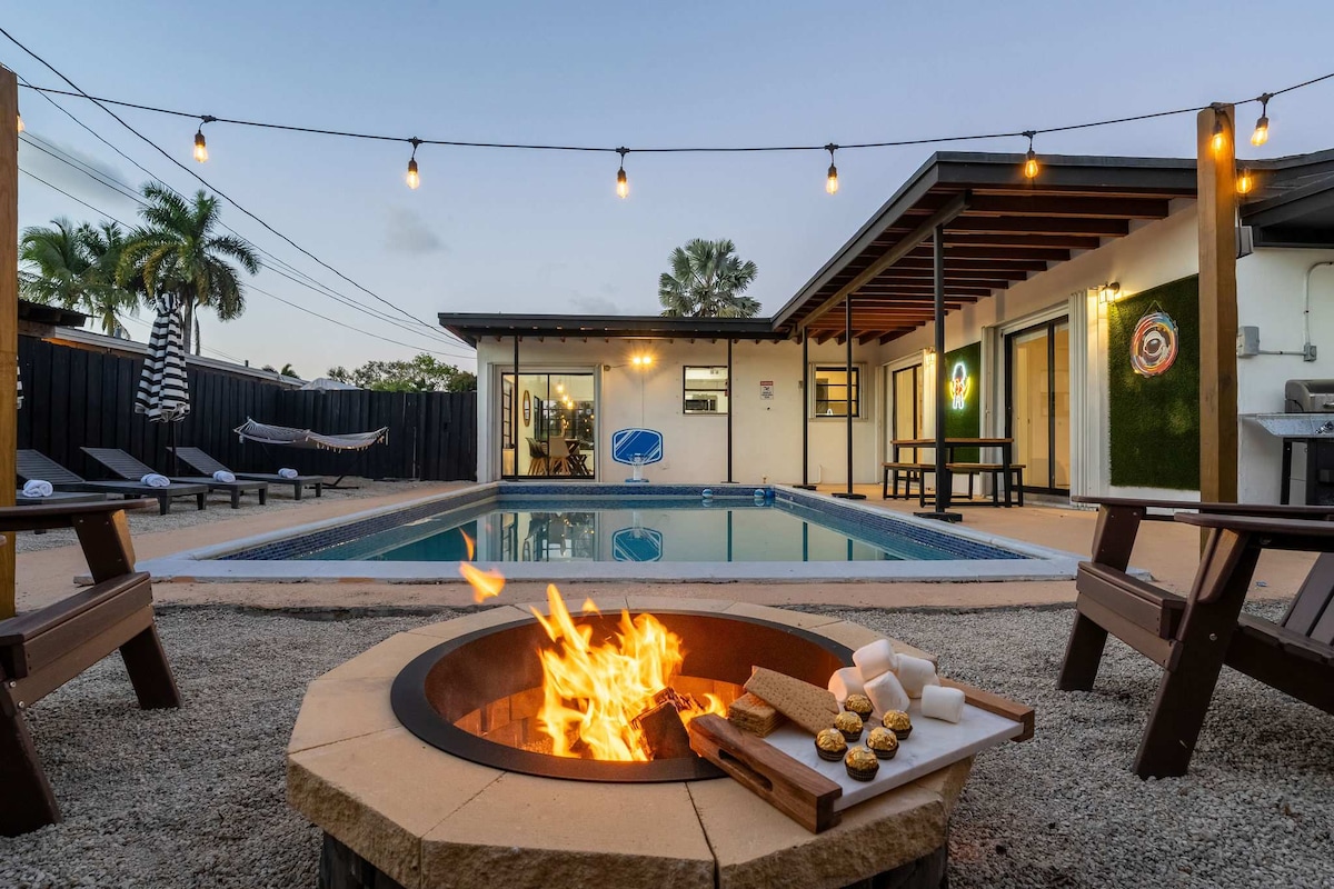 Bienvenue dans notre retraite exquise de Fort Lauderdale ! Ce luxueux Airbnb offre une expérience de vacances inoubliable, alliant élégance, confort et détente ultime. Nichée dans la ville animée de Fort Lauderdale, notre propriété dispose d'une piscine chauffée, d'une charmante pergola, d'un foyer extérieur, d'un mini-golf, d'un jeu de cornhole et bien plus encore. Destinations : Aéroport de Fort Lauderdale 14 min Las Olas Blvd 6 min Fort Lauderdale Beach 6 min Hard Rock Casino 12 min Centre commercial de Sawgrass à 19 min