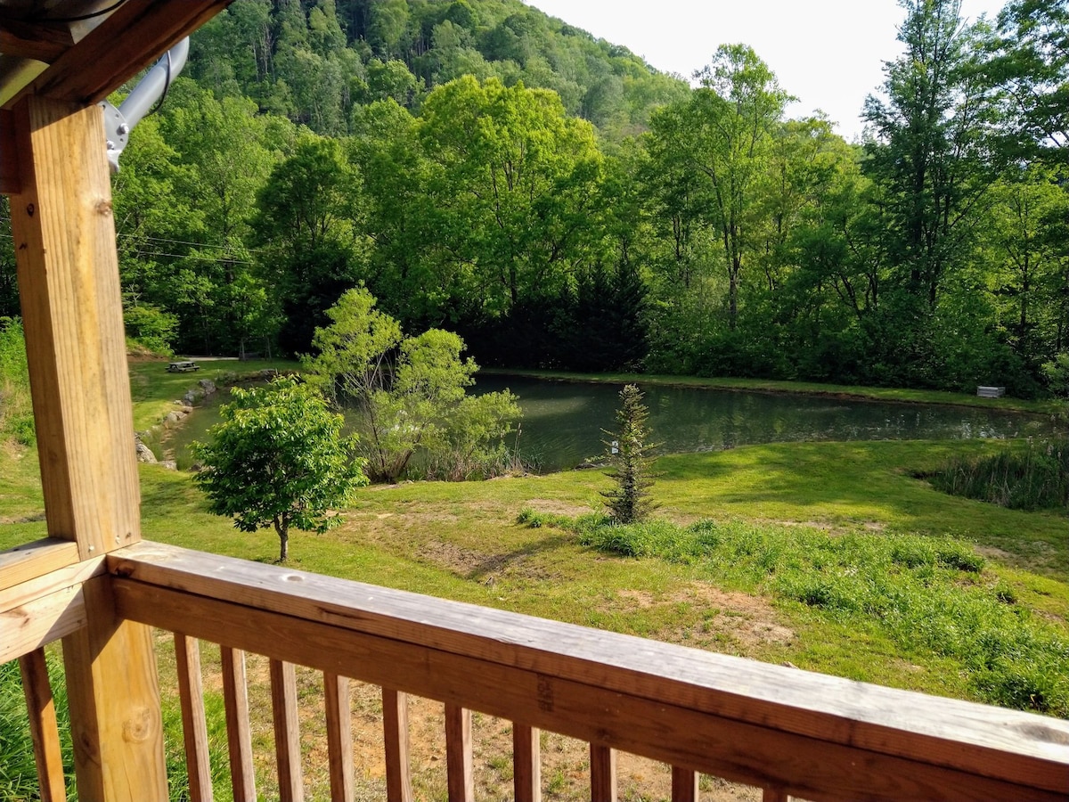 Cabane rustique avec vue sur la montagne/étang, près d'Asheville