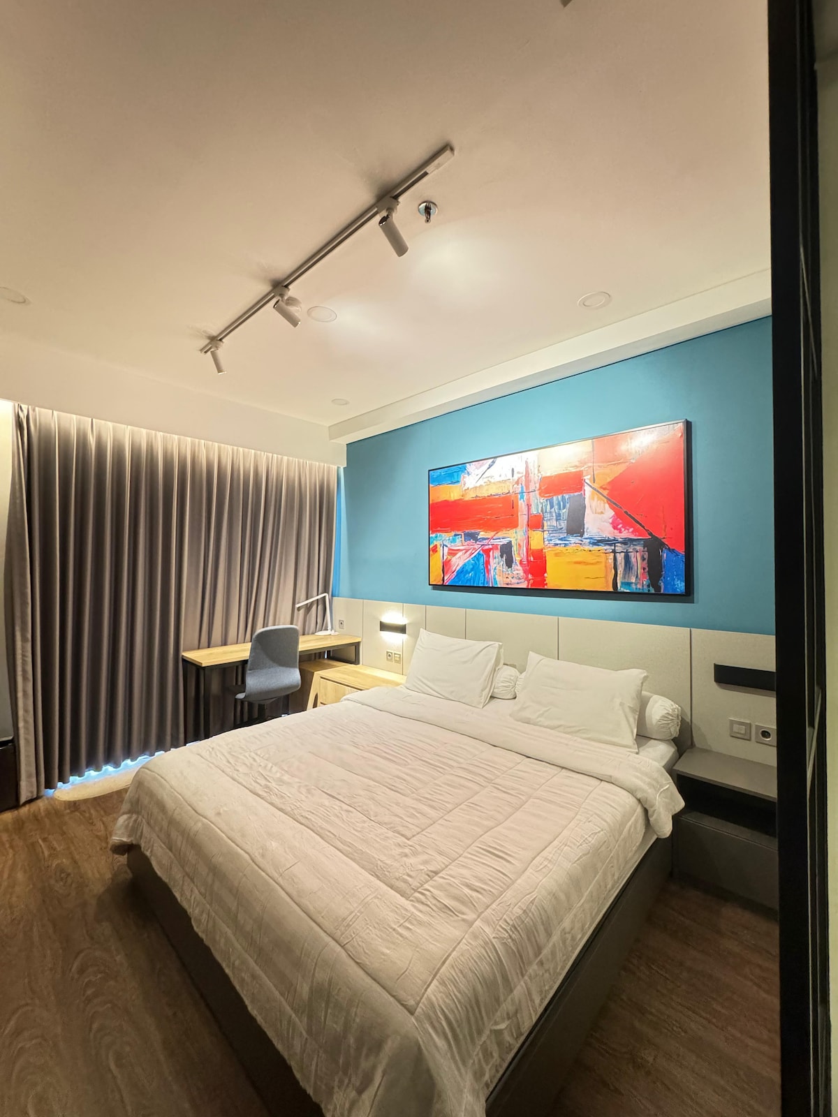 Bienvenue dans votre refuge d'inspiration industrielle au cœur de Yogyakarta. Avec un design élégant, des textures brutes et des touches confortables, cet appartement est le mélange parfait de confort urbain cool et accueillant, idéal pour les créatifs, les couples, les voyageurs en solo ou les télétravailleurs.