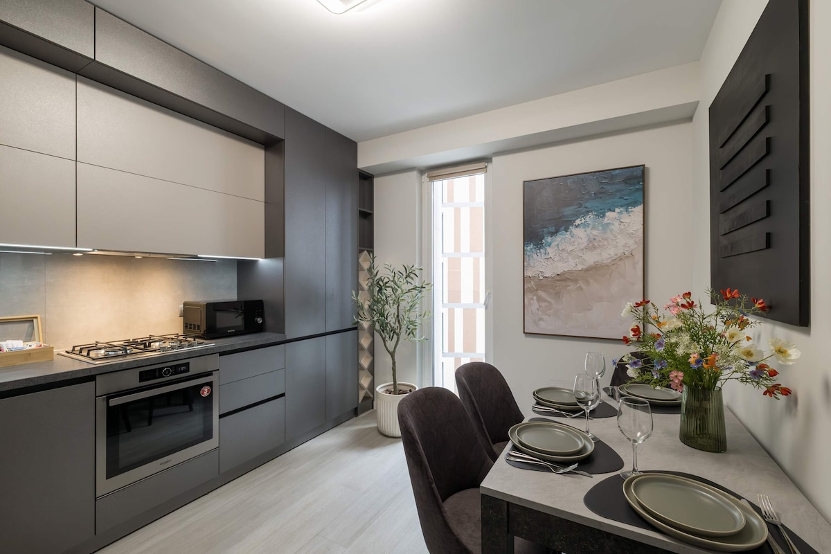 Set in Toro Center on Pantelimon Halippa 6, this bright GrandStay apartment gives you the rare mix of a peaceful premium complex and immediate access to shops, cafés, restaurants, fitness, and the park across the street. Inside, you’ll have a separate bedroom, a balcony for morning coffee, 2 Smart TVs, 2.2 Gbps Wi-Fi, a fully equipped kitchen, and the kind of thoughtful details that make it easy to settle in from the first night.