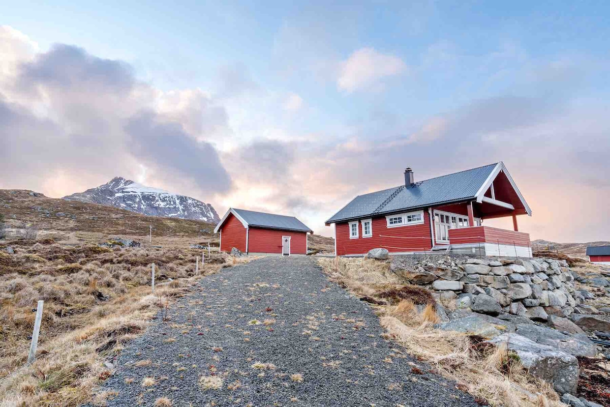 Maison de vacances rurale et charmante avec vue magnifique sur la montagne et l'océan, avec soleil de minuit en été et les aurores boréales en hiver. Belle nature juste devant la porte, avec de nombreuses possibilités de randonnée, de pêche et d'activités nautiques en été comme en hiver. Un bateau est disponible à la location. Se compose d'une salle de bain, d'un salon, d'une cuisine, de 3 chambres et de 2 balcons. 2 lits doubles et 2 lits simples. Lit pour bébé disponible. Utilisation gratuite du chargeur de voiture électrique pendant votre séjour. Il y a également des installations pour le filetage de poissons, ainsi que des installations de congélation.