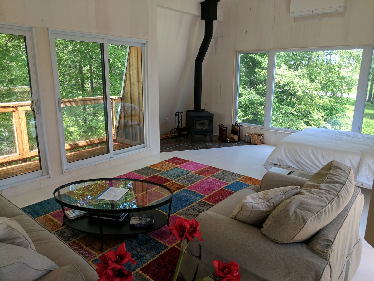 Découvrez cette retraite dans la nature à seulement 60 km de Toronto et ayez l'impression d'être à des milliers de kilomètres. L'expérience de glamping parfaite pour tout amateur de nature à la recherche d'une escapade relaxante. Il y a de l'électricité dans le bunkie qui offre la commodité de l'éclairage, de la recharge du téléphone cellulaire, d'un foyer électrique, d'une cafetière kuerig et d'un mini-réfrigérateur avec congélateur. Pratiquez vos activités de plein air préférées pendant la journée, puis retournez dans votre lit Queen Size et votre canapé-lit confortables à quelques pas du feu de camp.