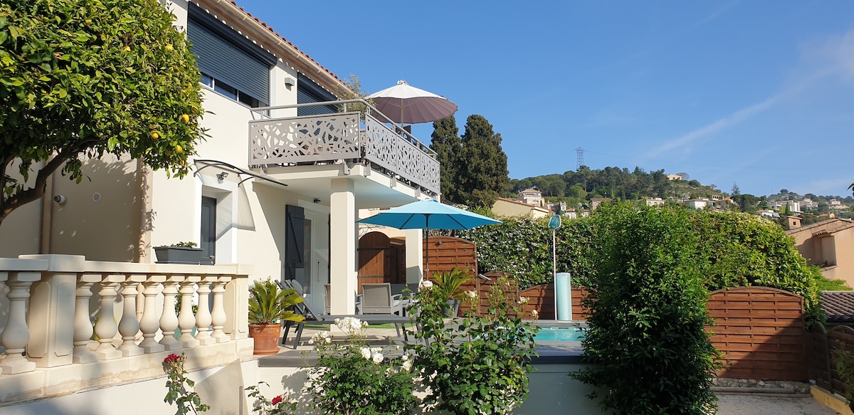 Bienvenue chez nous ! Appartement et terrasse vue mer, plein sud au calme. Accès par des escaliers depuis la route. Vous disposerez d'un lit double, smart TV, climatisation réversible, WiFi. Le linge de lit et de toilette sont fournis. La cuisine est entièrement équipée (LL, LV, four, MO, cafetière Nespresso, bouilloire, grille pain, huile, vinaigre, sel, poivre). Devant vous, la Méditerranée et son ballet de yachts, le ciel et son spectacle de parapentes. La quiétude vous attend. À bientôt !