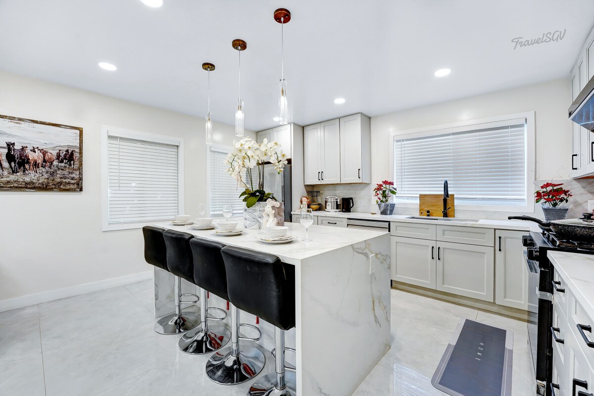 Découvrez le luxe dans notre retraite à flanc de colline moderne ! Dégustez tous les délicieux plats du SGV ! À quelques minutes du centre-ville de Los Angeles et entre Disneyland et Universal Studios, ce joyau de 2 lits et 3 salles de bain offre une vue imprenable sur la vallée de San Gabriel. Profitez d'un espace de vie lumineux avec des puits de lumière, une cuisine de chef avec des appareils Thermador. La luxueuse suite principale dispose d'un lit king size, d'un bureau privé et d'une salle de bain avec baignoire à jets et douche en verre. Améliorez votre séjour avec confort et style !