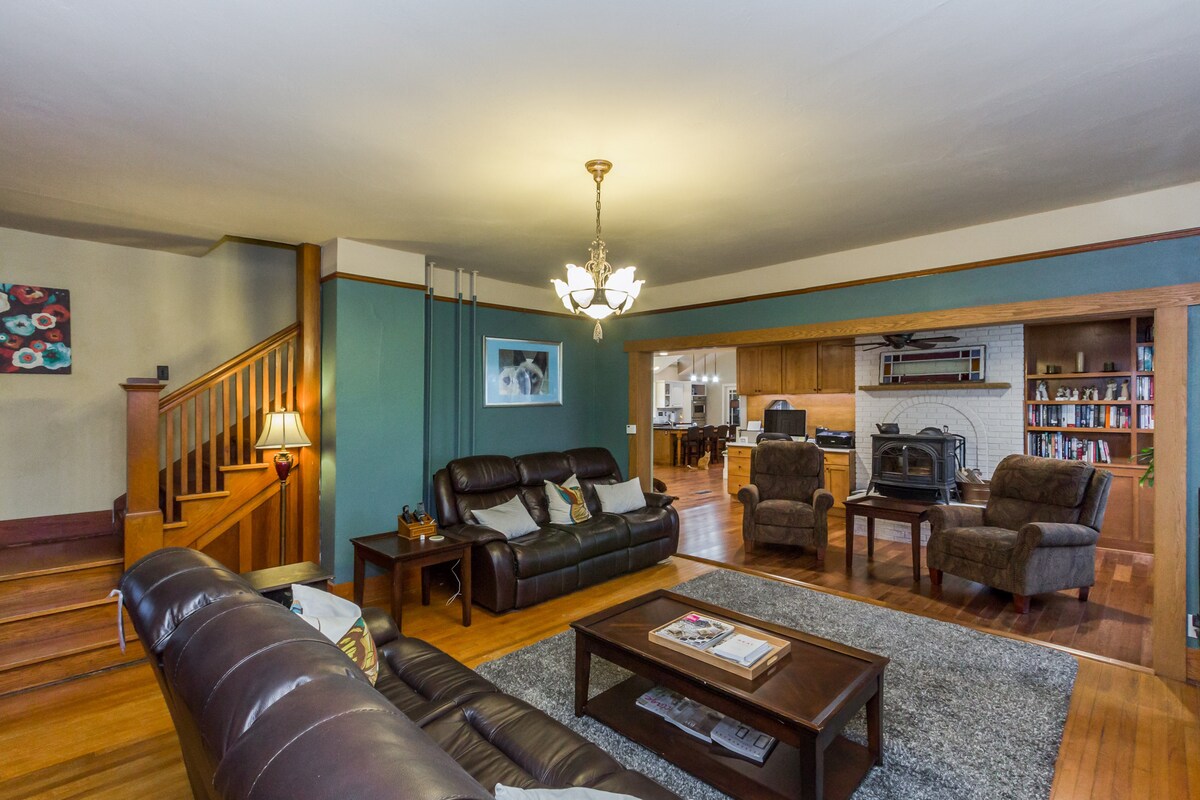 Entièrement rénové 1865 original Strawtown Store de Pella idéalement situé dans l'une des meilleures petites villes de l'Iowa. À trois pâtés de maisons du centre-ville de Pella, à 1 pâté de maisons de West Market Park, à 2 pâtés de maisons du Central football, du baseball et du complexe de softball. Profitez du charme du chalet avec deux suites privées avec lit et salle de bain, une salle familiale avec salle à manger, cuisine complète, porche avant et latéral, buanderie et grande cour arrière. Stationnement hors rue à l'arrière. Des draps de luxe sur des lits queen size vous attendent après vos aventures.